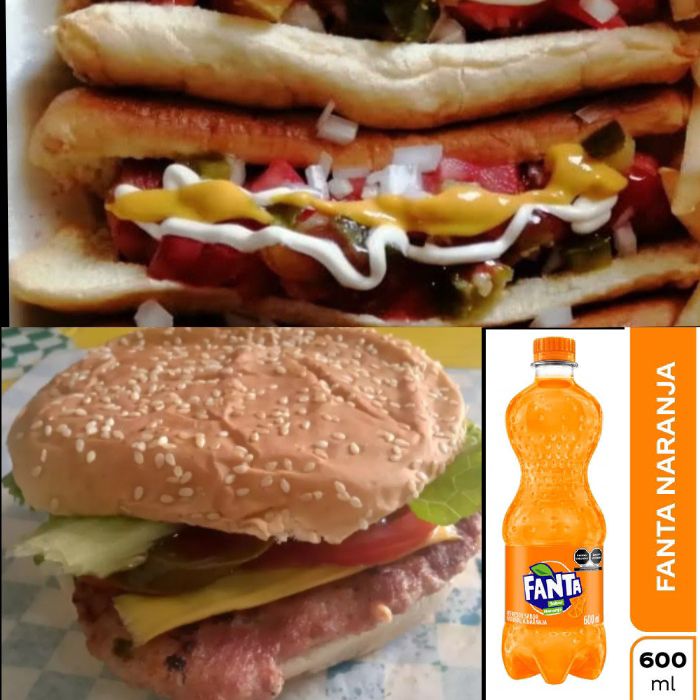 Deli Burger Sencilla*1 + 2 Hot Dog Sencillos*1 + Fanta Naranja 600 Ml*1