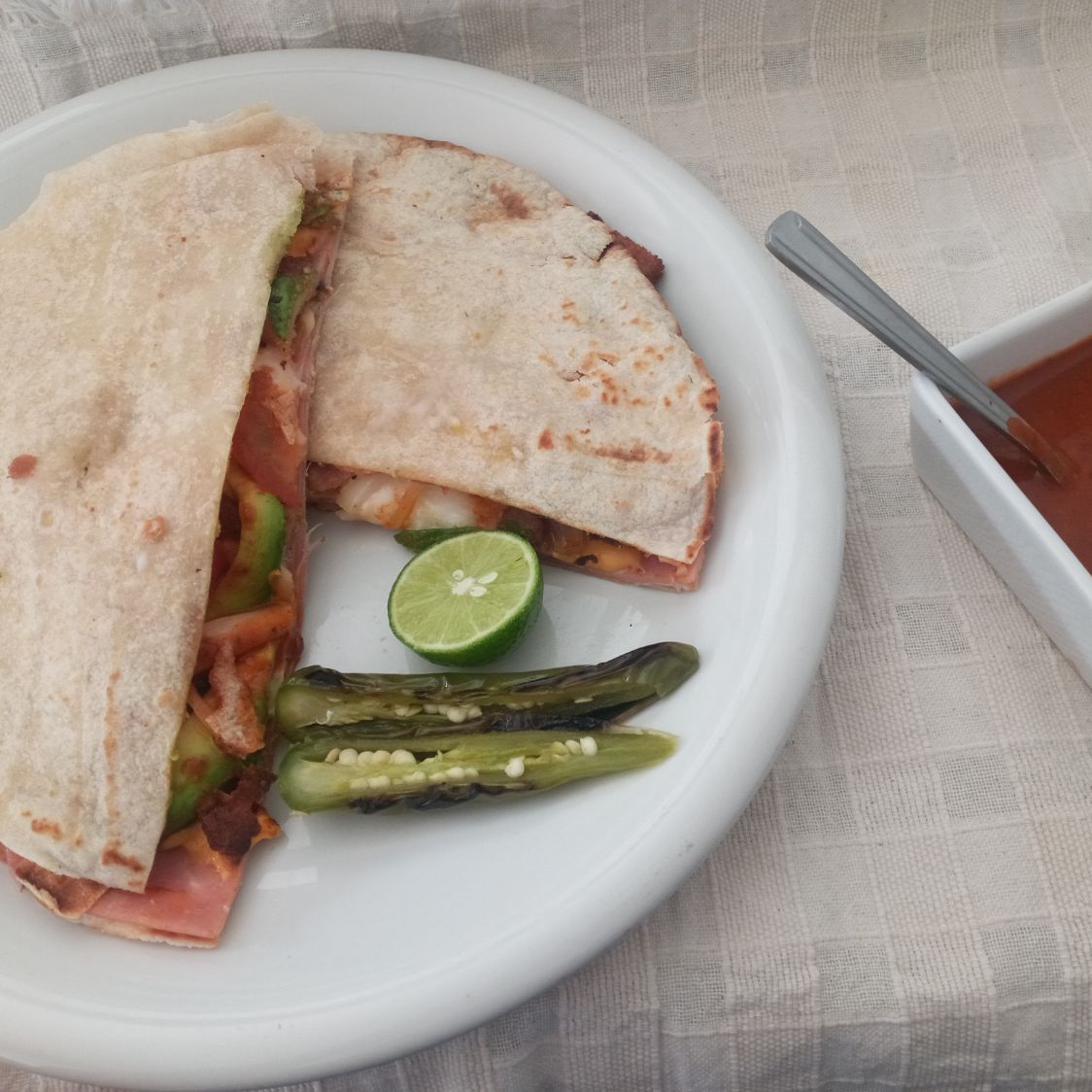 Pierna,Chorizo,Queso Oaxaca y Aguacate,Cebolla,Jitomate,Chiles en Vinagre y Salsa Chipotle