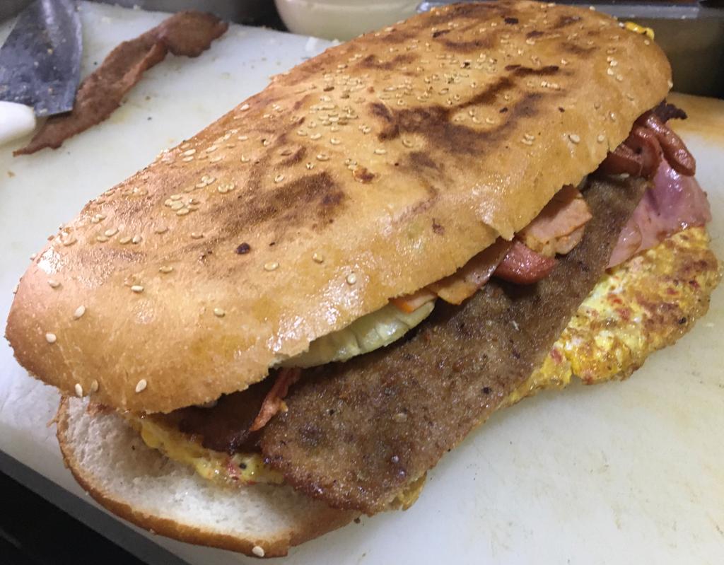 Milanesa, pierna, queso y chorizo.