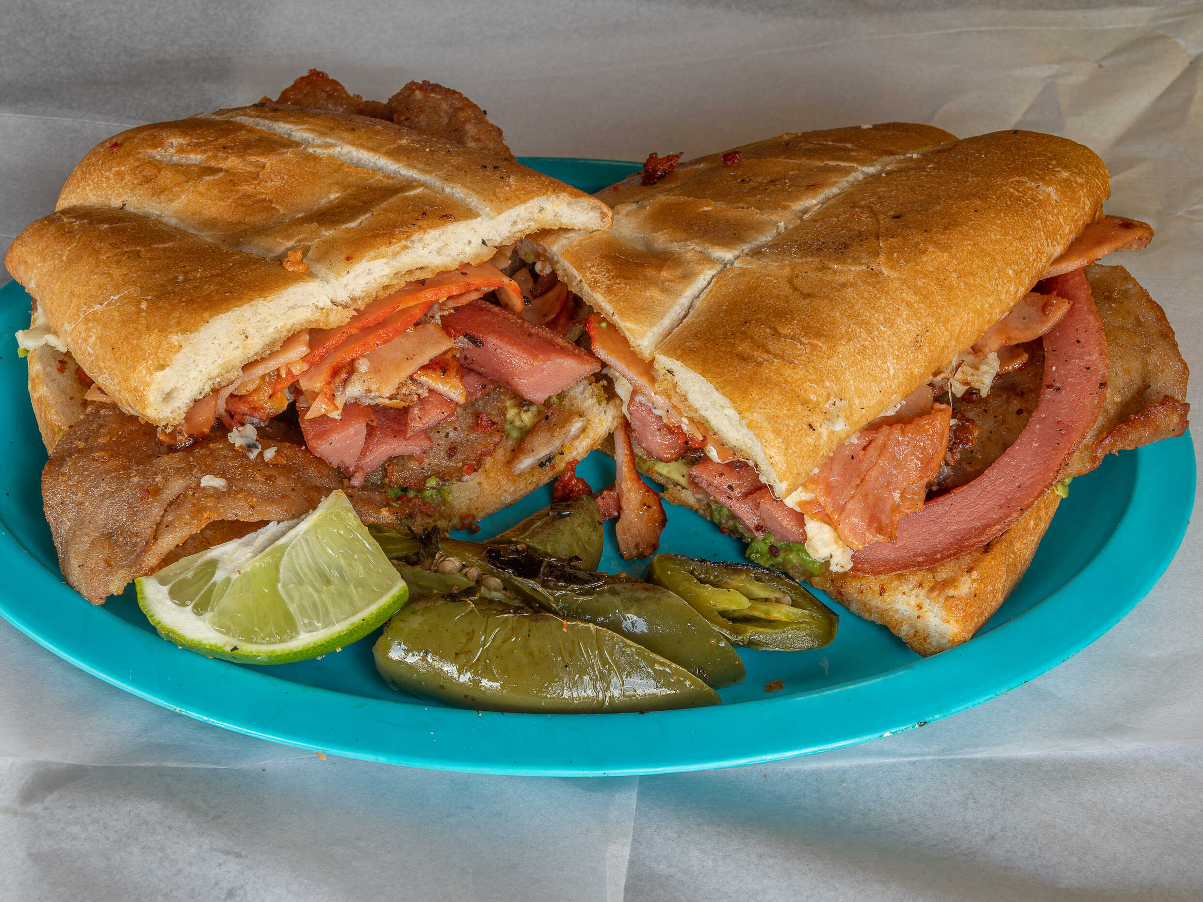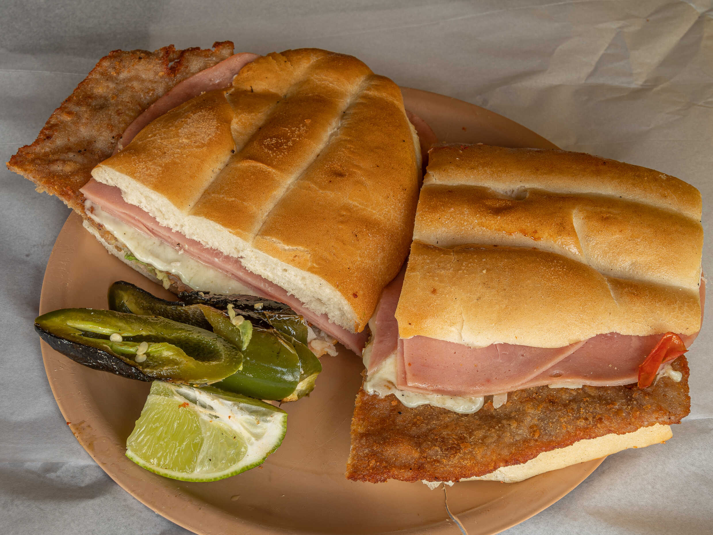 Pierna, piña y queso.