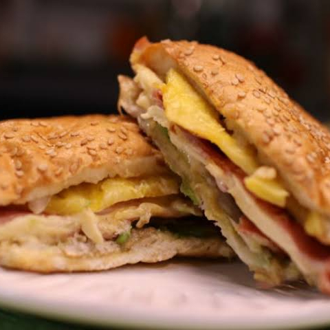 pan con crema, mantequilla, cebolla, jitomate, aguacate, salsa o chiles y jamon de pavo.