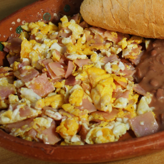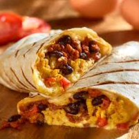 burrito de huevo con jamon, frijoles,queso y salsa chipotle.