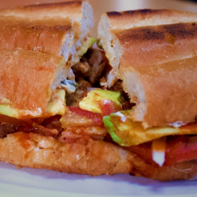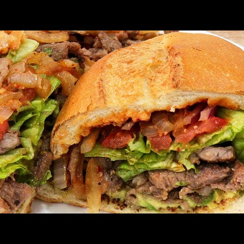 CARNE BISTEC (mayonesa,mostaza,jitomate,aguacate,chile jalapeño,salsa chopotle)