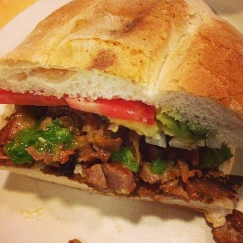 CARNE PASTOR (mayonesa,mostaza,jitomate,aguacate,chile jalapeño,salsa chopotle)