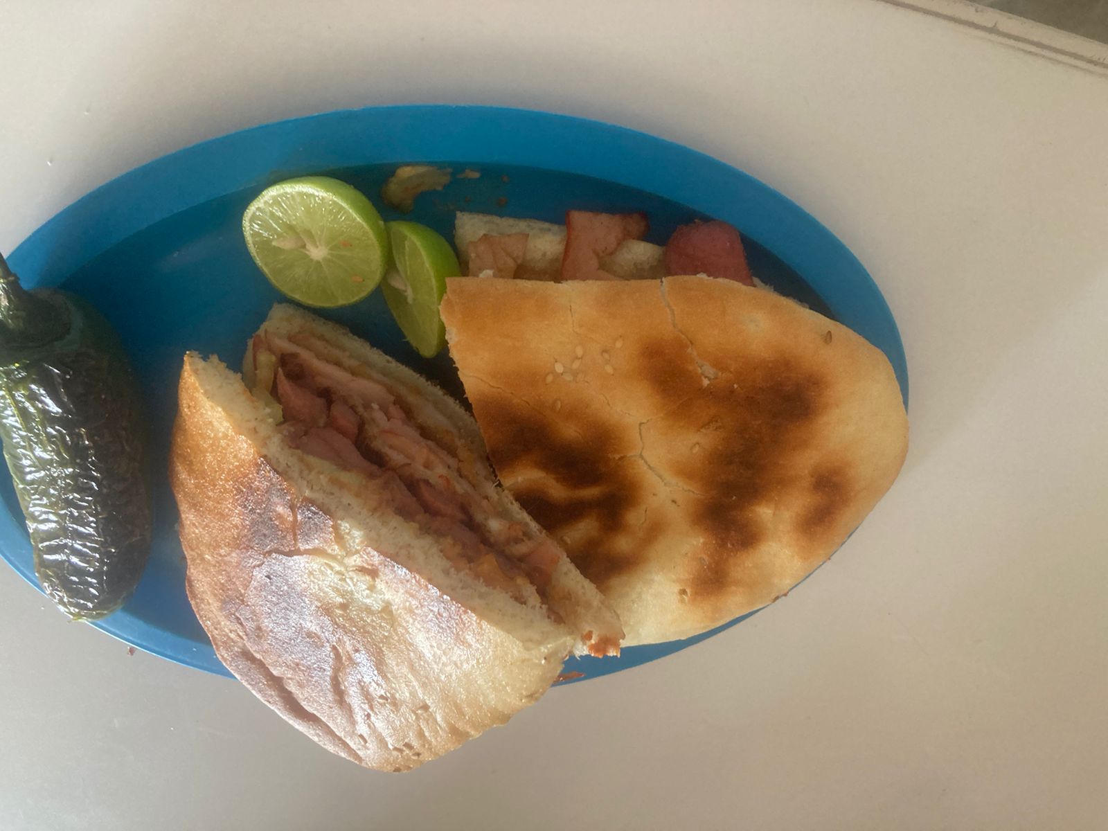 Pierna, jamón, queso oaxaca y piña.