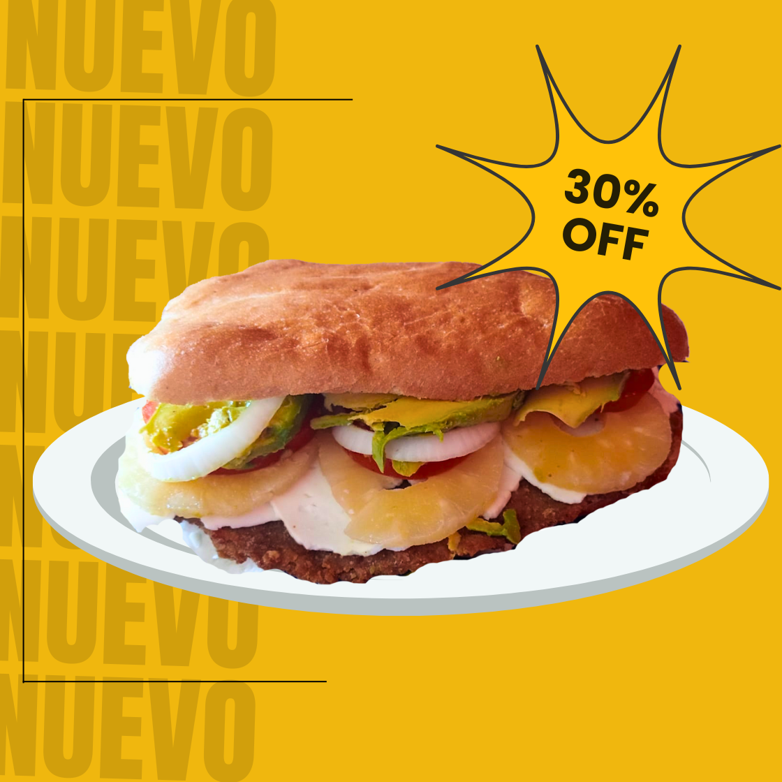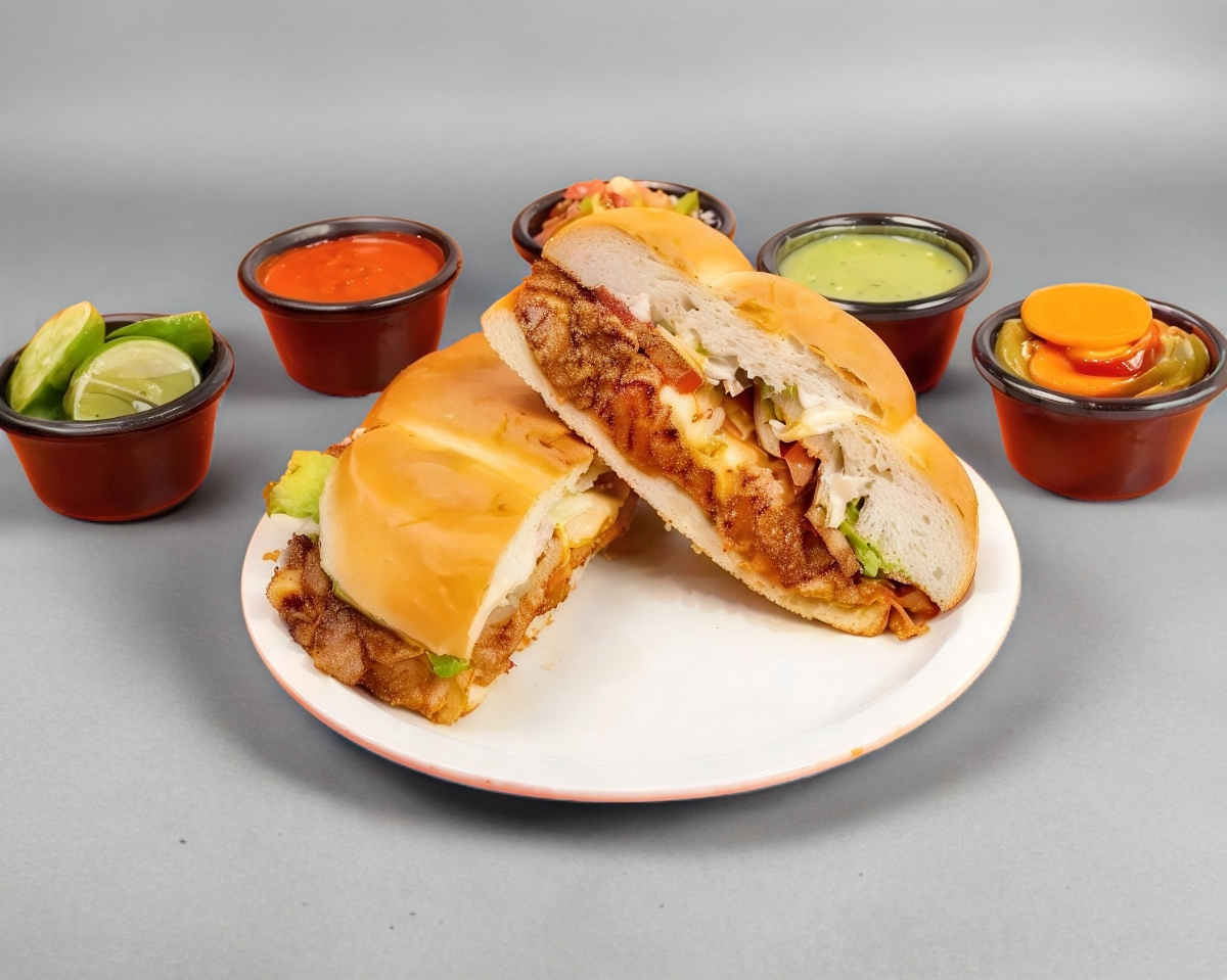 Milanesa, jitomate, cebolla, aguacate y salsa chipotle