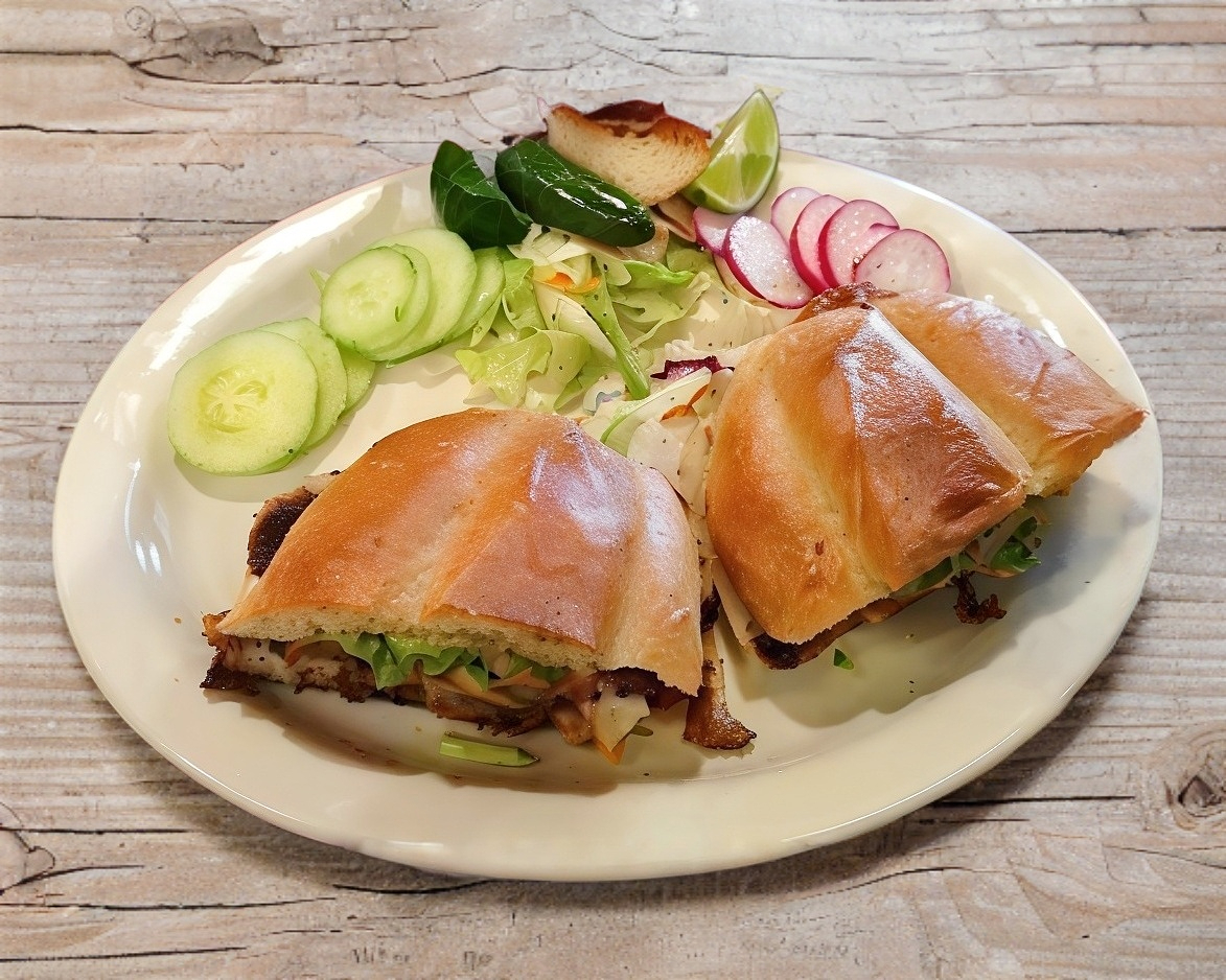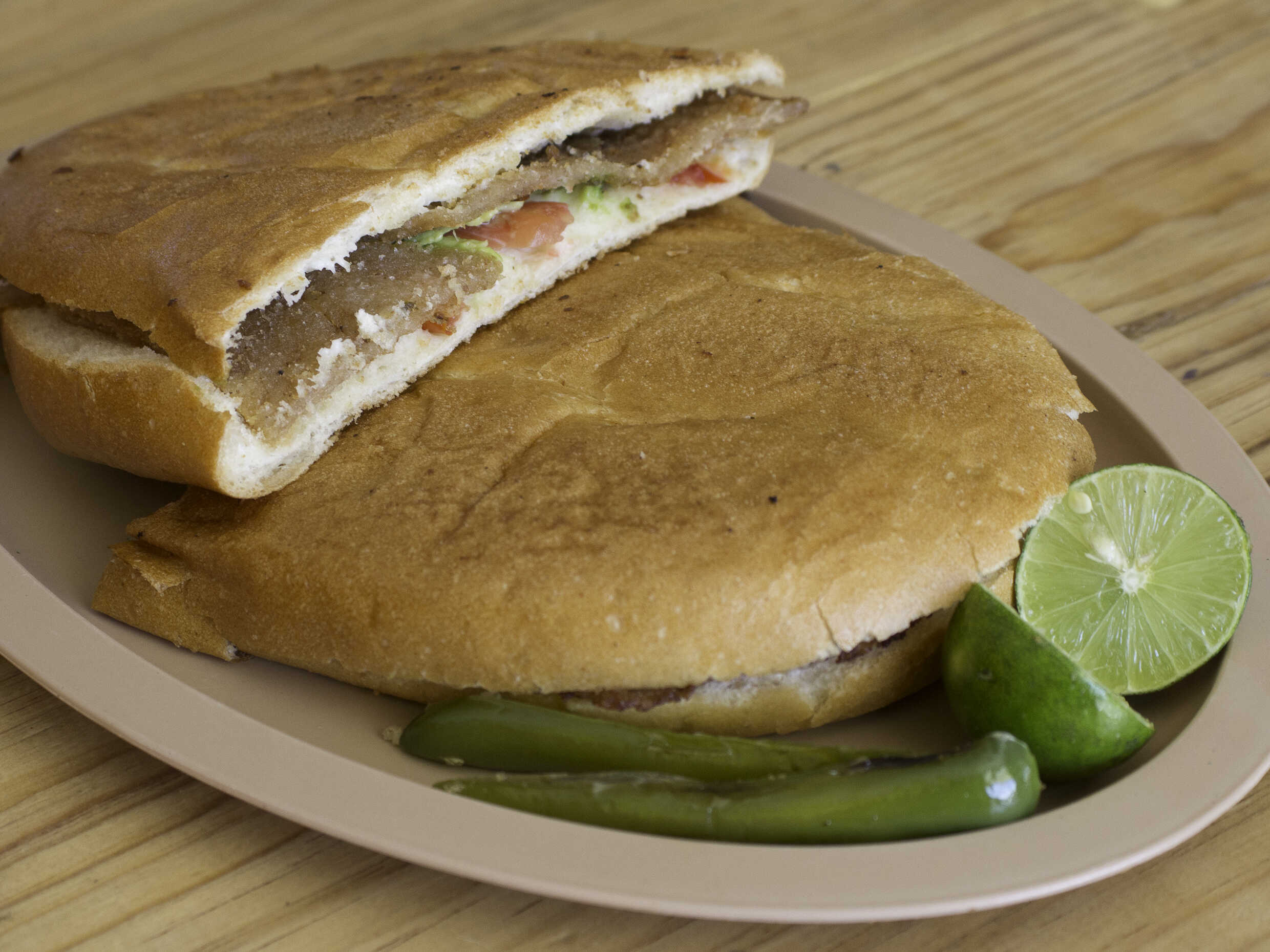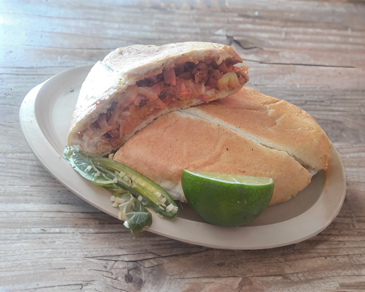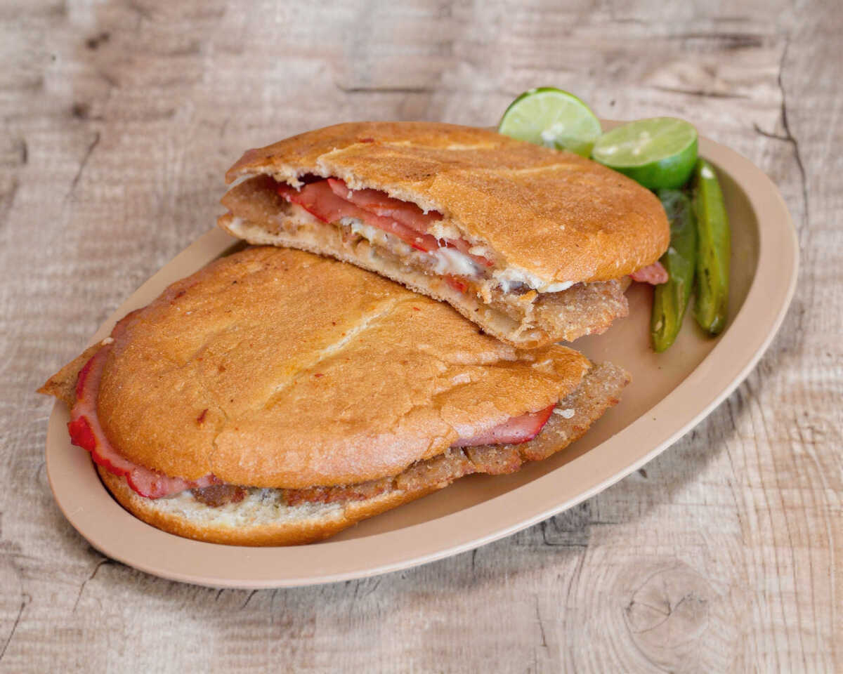 Milanesa pastor y queso, oaxaca incluye mayonesa crema jitomate aguacate y chipotle