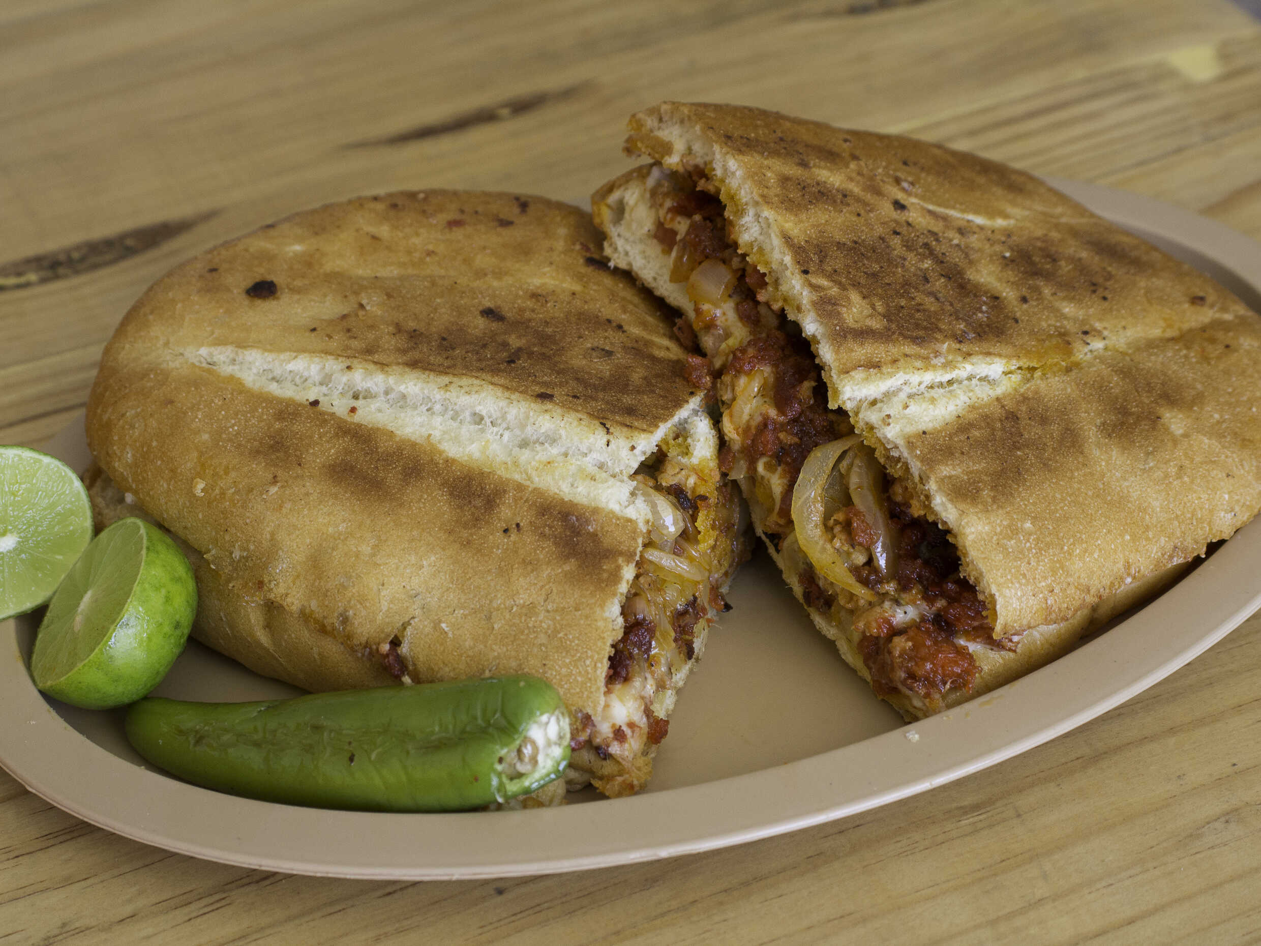 Pierna chorizo y queso, oaxaca incluye jitomate aguacate mayonesa crema y chipotle