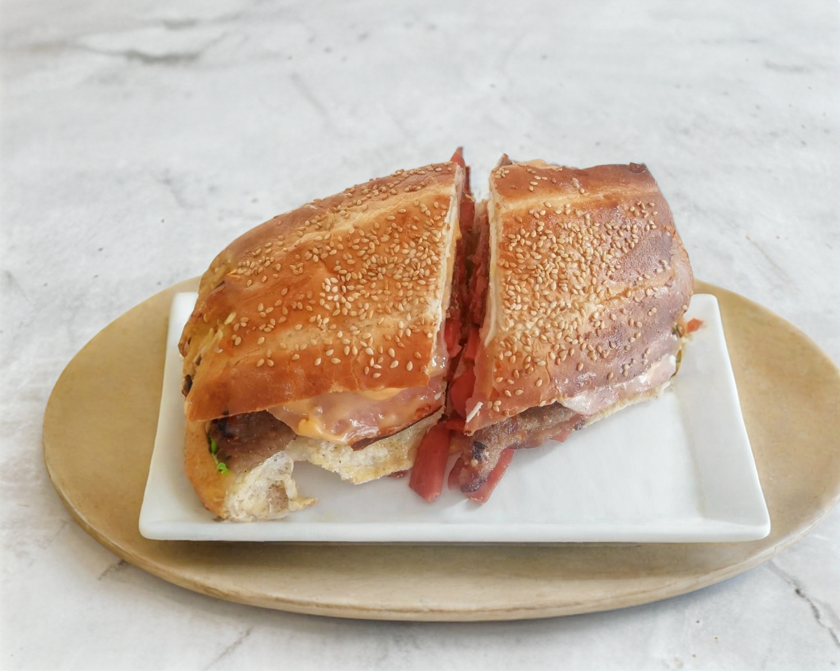 Jamón, pierna, piña y queso oaxaca. Mayonesa, aguacate, jitomate, cebolla y salsa chipotle.
