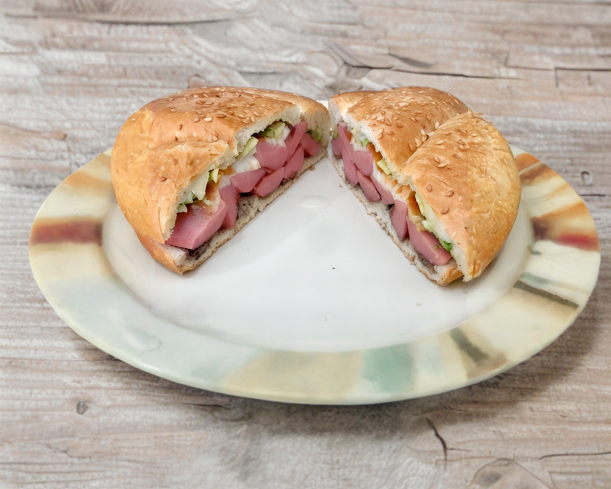 Tortilla de harina, milanesa, salchicha, chorizo, pierna, jamón, frijoles, queso, cebolla, jitomate y salsa xo.