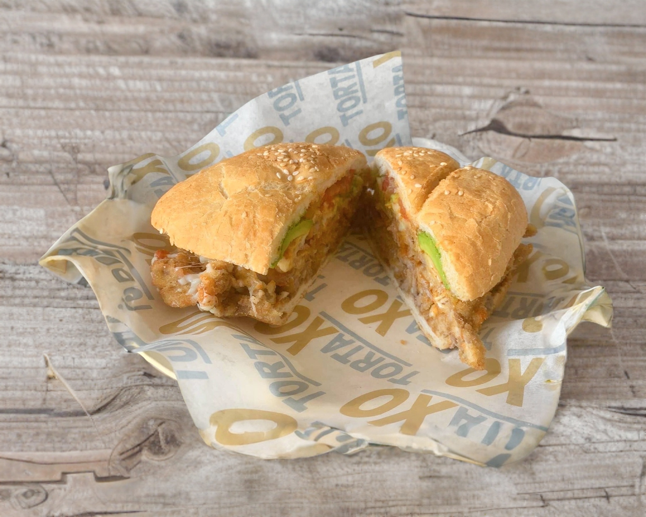 MILANESA DE POLLO, MAYONESA,FRIJOL, AGUACATE,CEBOLLA, JITOMATE,COSTRA DE QUESO, SALSA XO