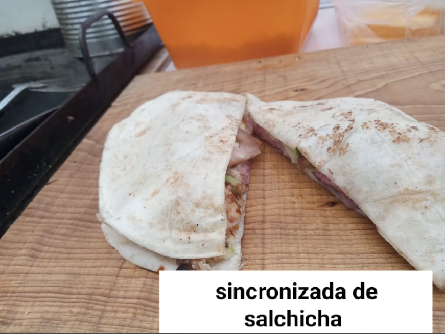 Jamón con queso amarillo y queso oaxaca, pollo y queso oaxaca o salchicha y queso oaxaca.