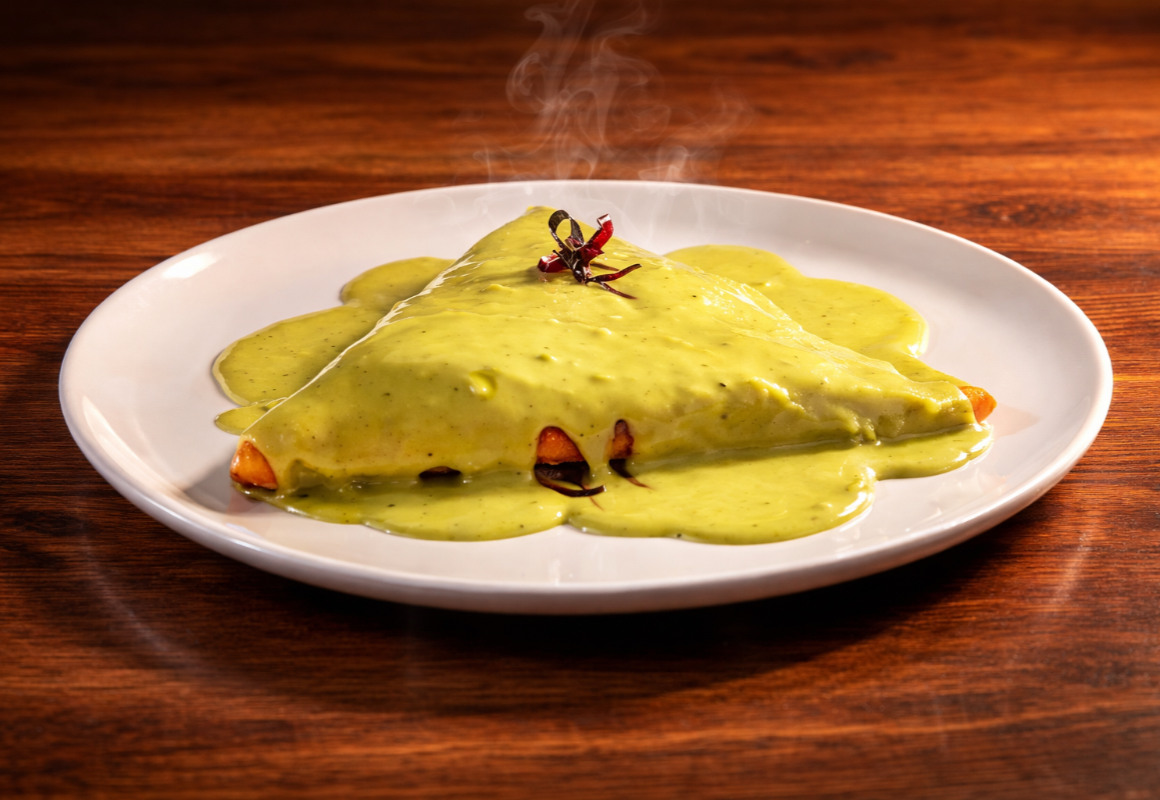 Crepa salada cubierta con salsa cremosa. Personaliza con tus ingredientes favoritos.