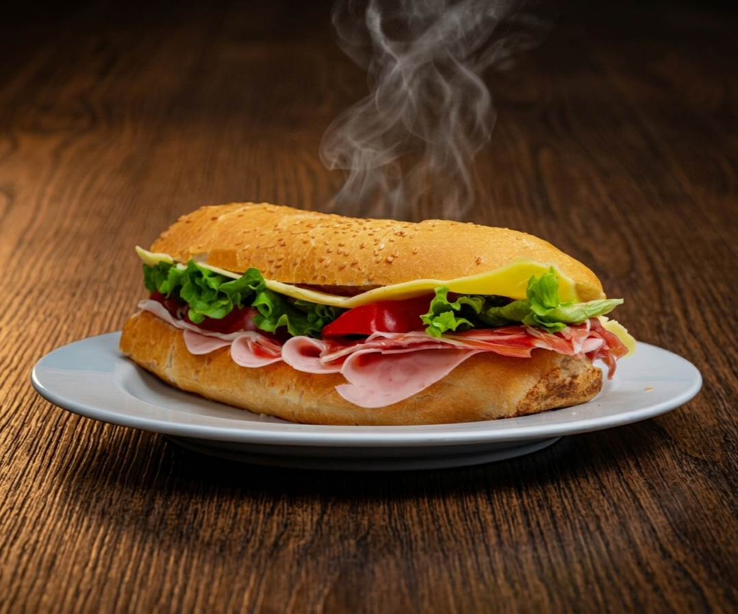 Champiñones, queso gouda, jitomate y lechuga italiana.