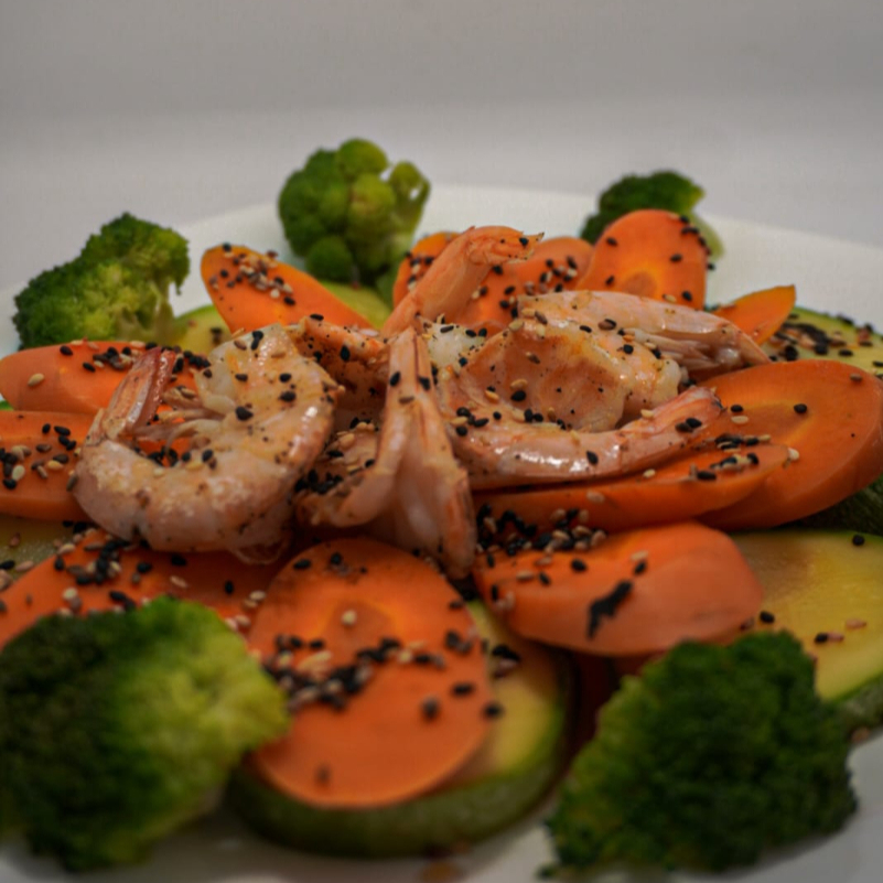 verduras a la plancha con camaron , sazonados con un toque de salsa de soya