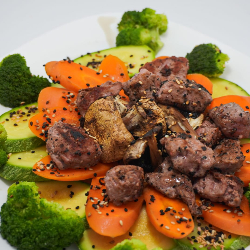 verduras a la plancha con carne , sazonados con un toque de salsa de soya
