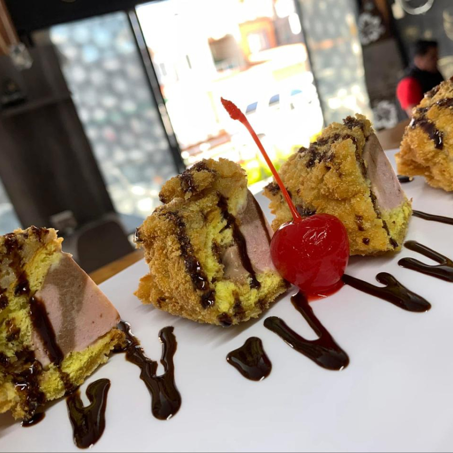 helado frito relleno de helado con chocolate , lechera o mermelada