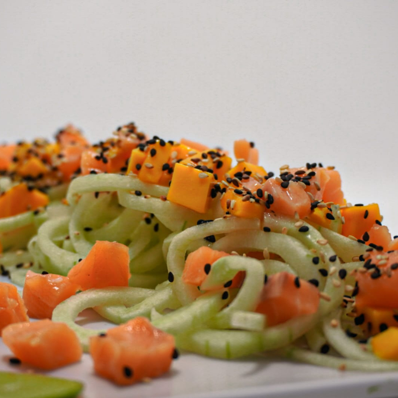 sumo de pepino , salmon y/o atun fresco trozos de mago y salseado con nuestra salsa especial