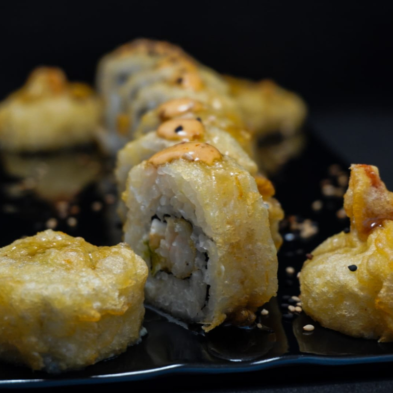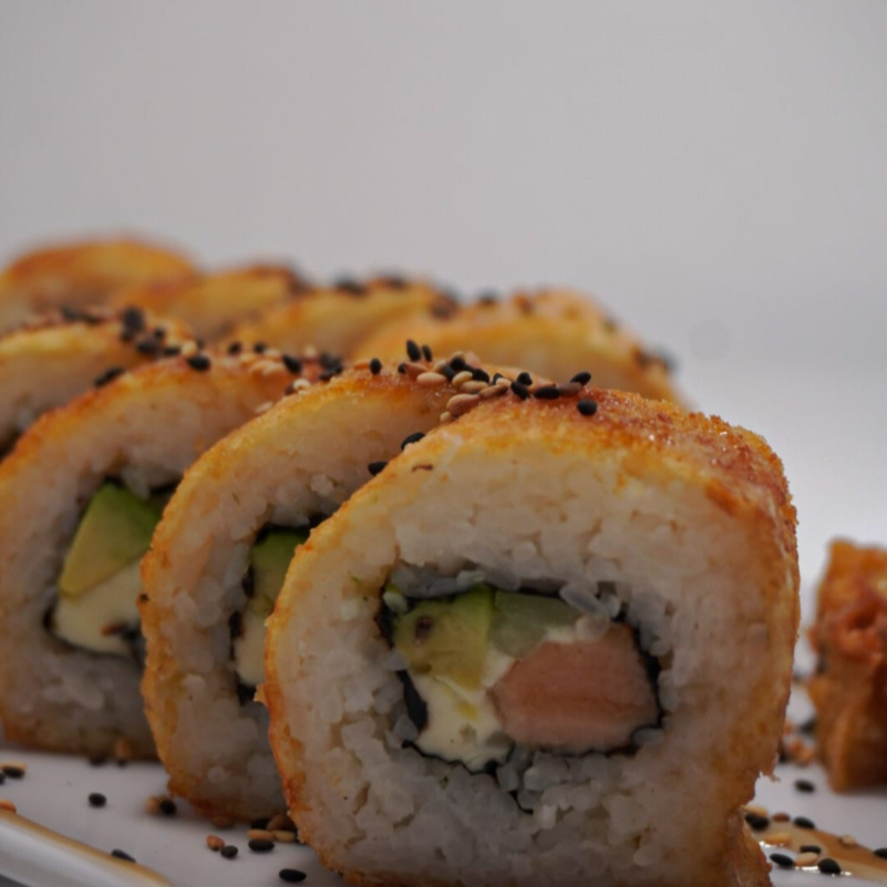 camaron , queso crema , aguacate por dentro ajonjoli por fuera