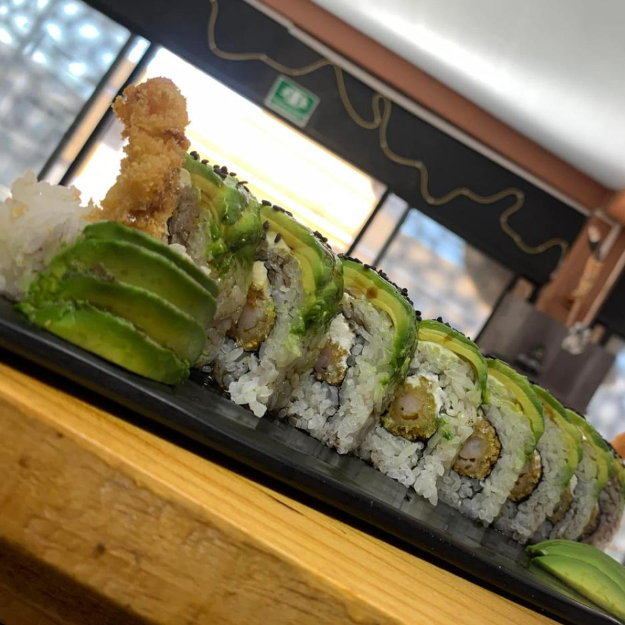 atun , queso crema , aguacate por dentro . ajonjoli por fuera