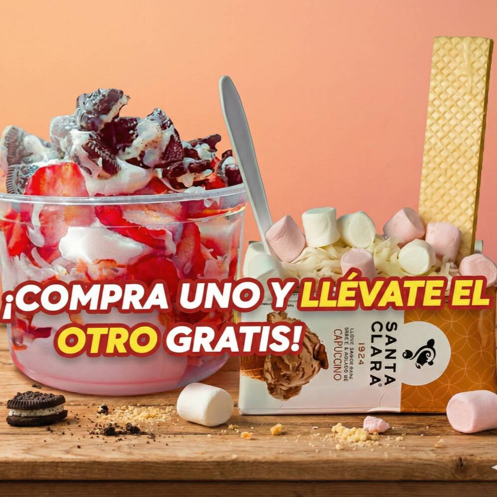 Santa Clara o Vaquita Alpura de tu elección con los toppings favoritos y jarabe