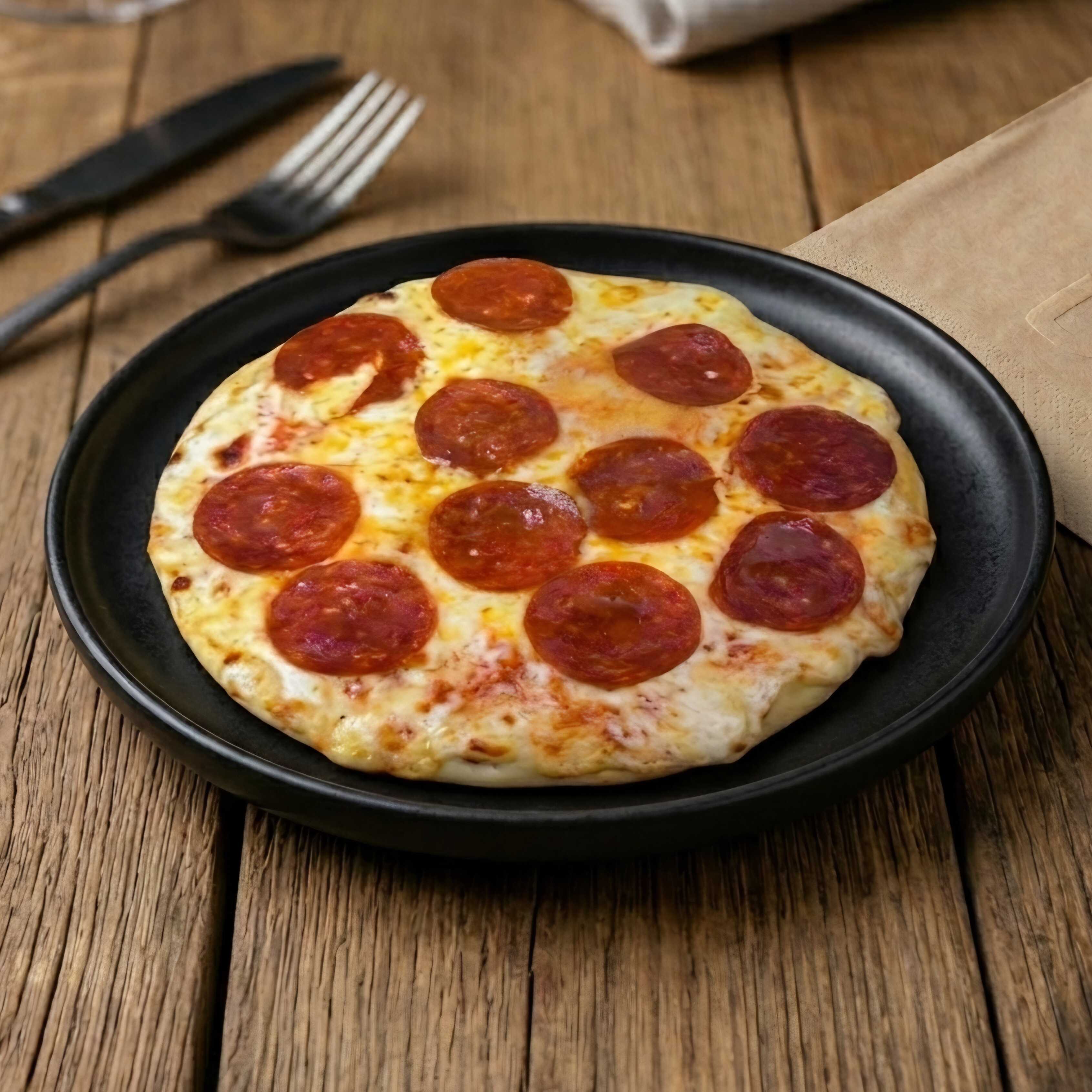 Pizza de 18 cm. Con pepperoni, champiñones, pimiento y una capa generosa de queso mozzarella calidad premium.