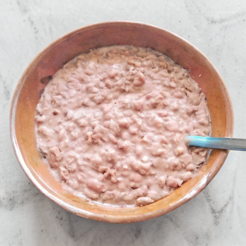 CHICHARRON EN SALSA DE JITOMATE ACOMPAÑADA DE ARROZ Y FRIJOLES