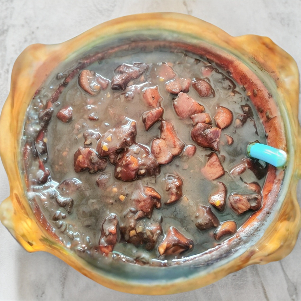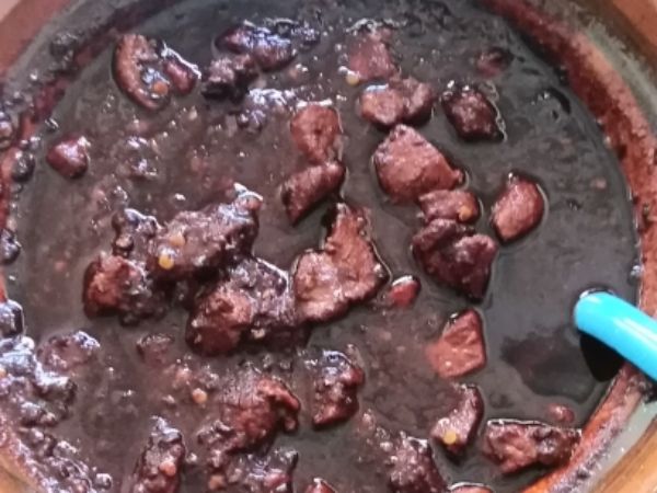 BISTEC EN CHILE NEGRO CON PAPAS ACOMPAÑADO DE ARROZ Y FRIJOLES
