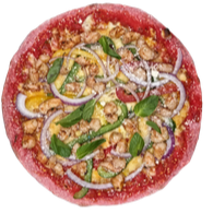 Camarón, Parmesano, Albahaca, Cebolla morada