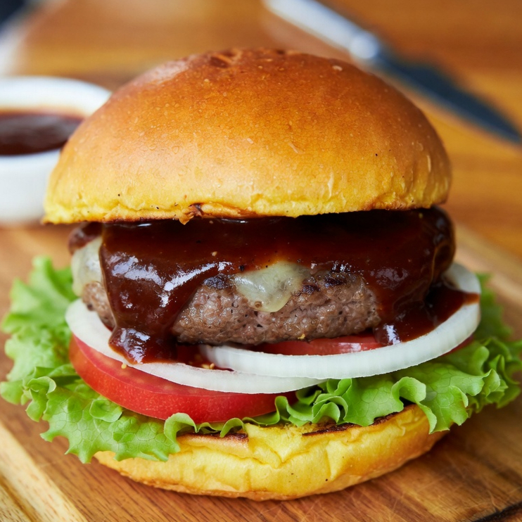 Carne de Res, Salsa BBQ, Queso Manchego, Lechuga, Jitomate, Cebolla, aderezo de la casa y Papas a la Francesa