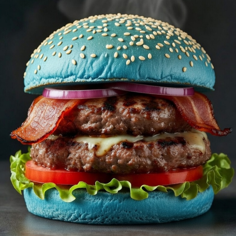 Doble Carne de Res, Tocino Doble, Queso Manchego, Lechuga, Jitomate, Cebolla, aderezo de la casa y Papas a la Francesa