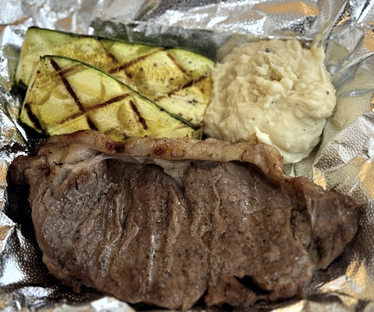 300 gr de Carne Tipo Arrachera al Grill, Acompañada de Pan Brioche y Queso Tipo Suizo