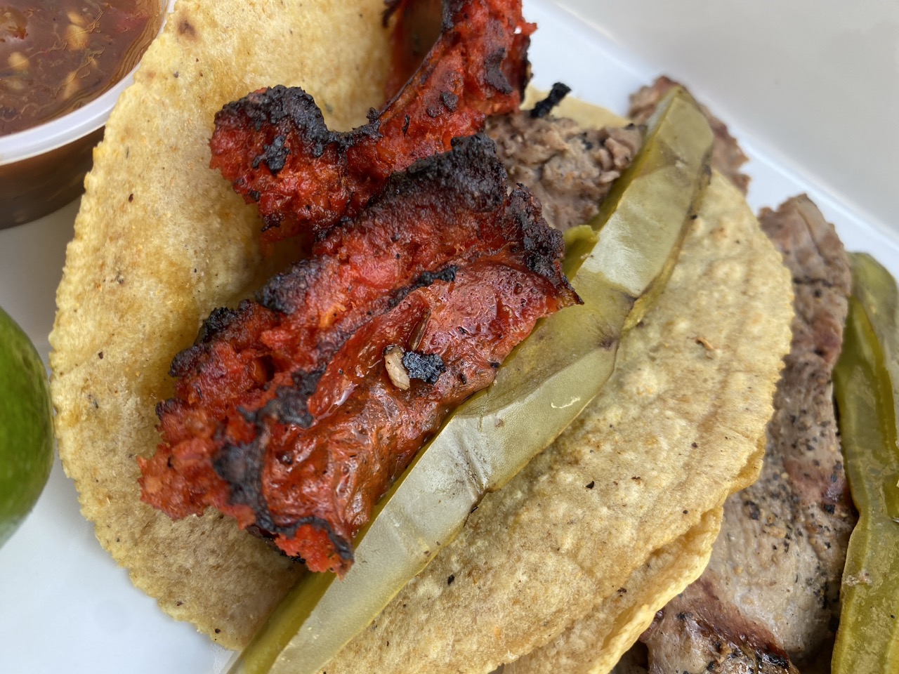 Ricos Tacos de Arrachera con Longaniza al Grill