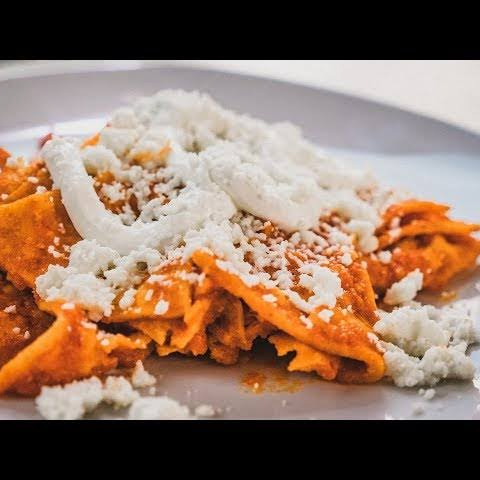 Chilaquiles rojos •queso •crema •frijoles •bolillo