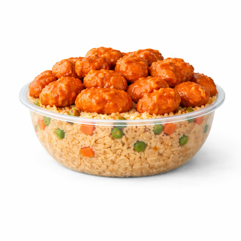 Bowl individual: 1 cucharada de tu platillo favorito sobre una cama del complemento de tu elección, en una porción ligera.