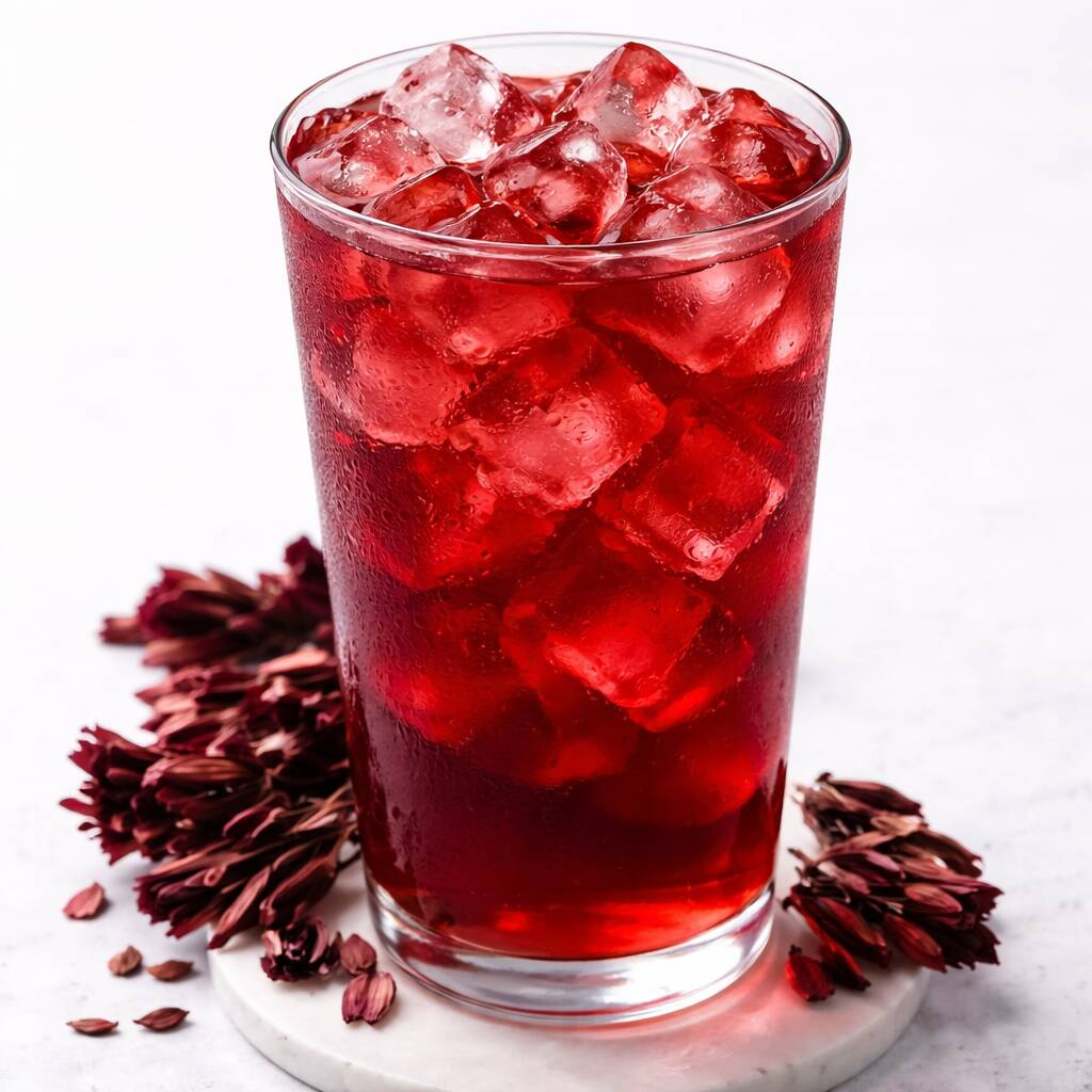 Agua de jamaica bien fría, fresca y de sabor vibrante, con ese balance delicioso entre lo floral y lo acidito que la hace irresistiblemente refrescante. El acompañamiento perfecto para una comida llena de sabor.