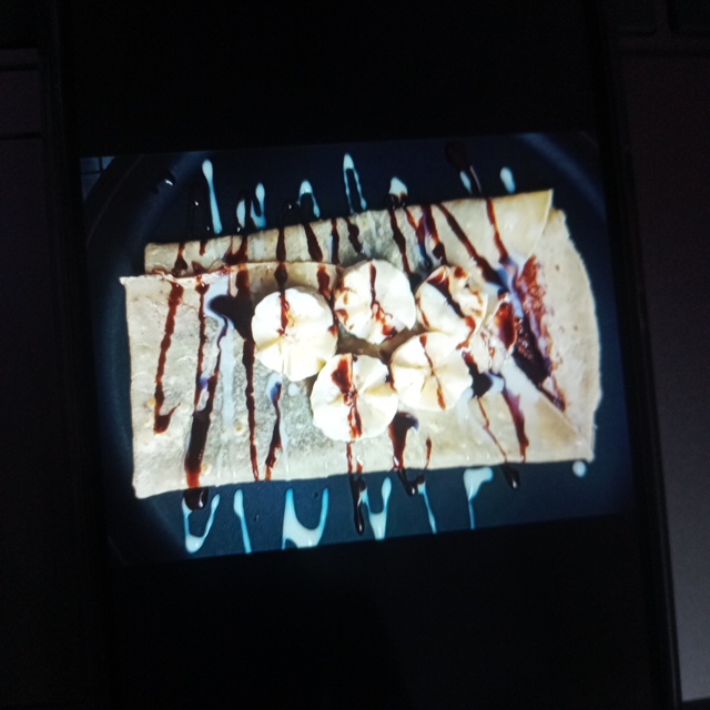 Crepa Hot Cake, Nutella, Plátano, 1 tipo de toping (puede ser: chispas de chocolate, crema chantilly, jarabe de maple, lechera, granola, nuez, arándano)