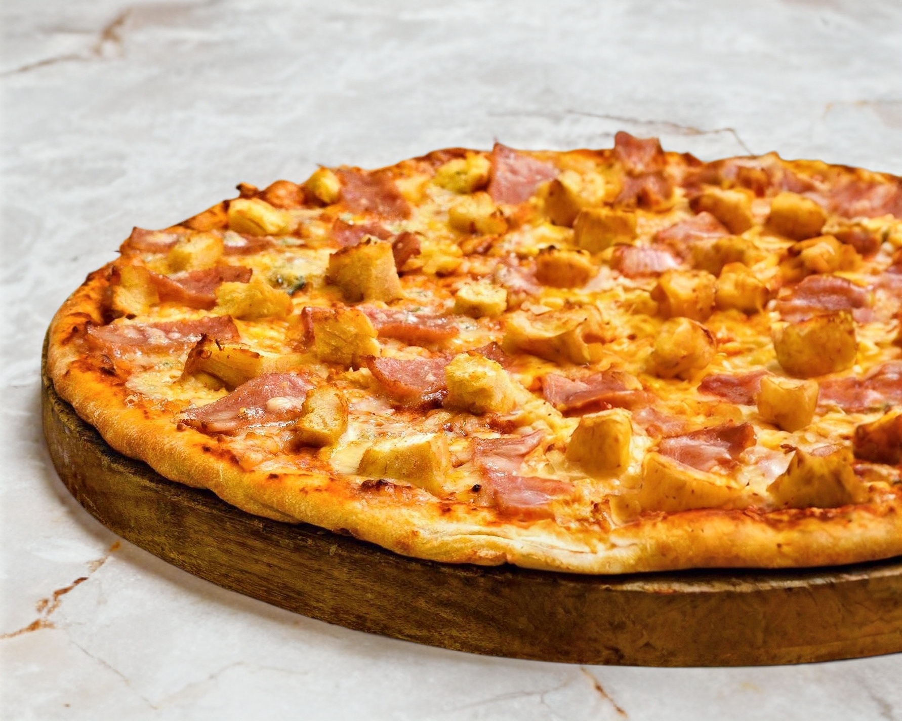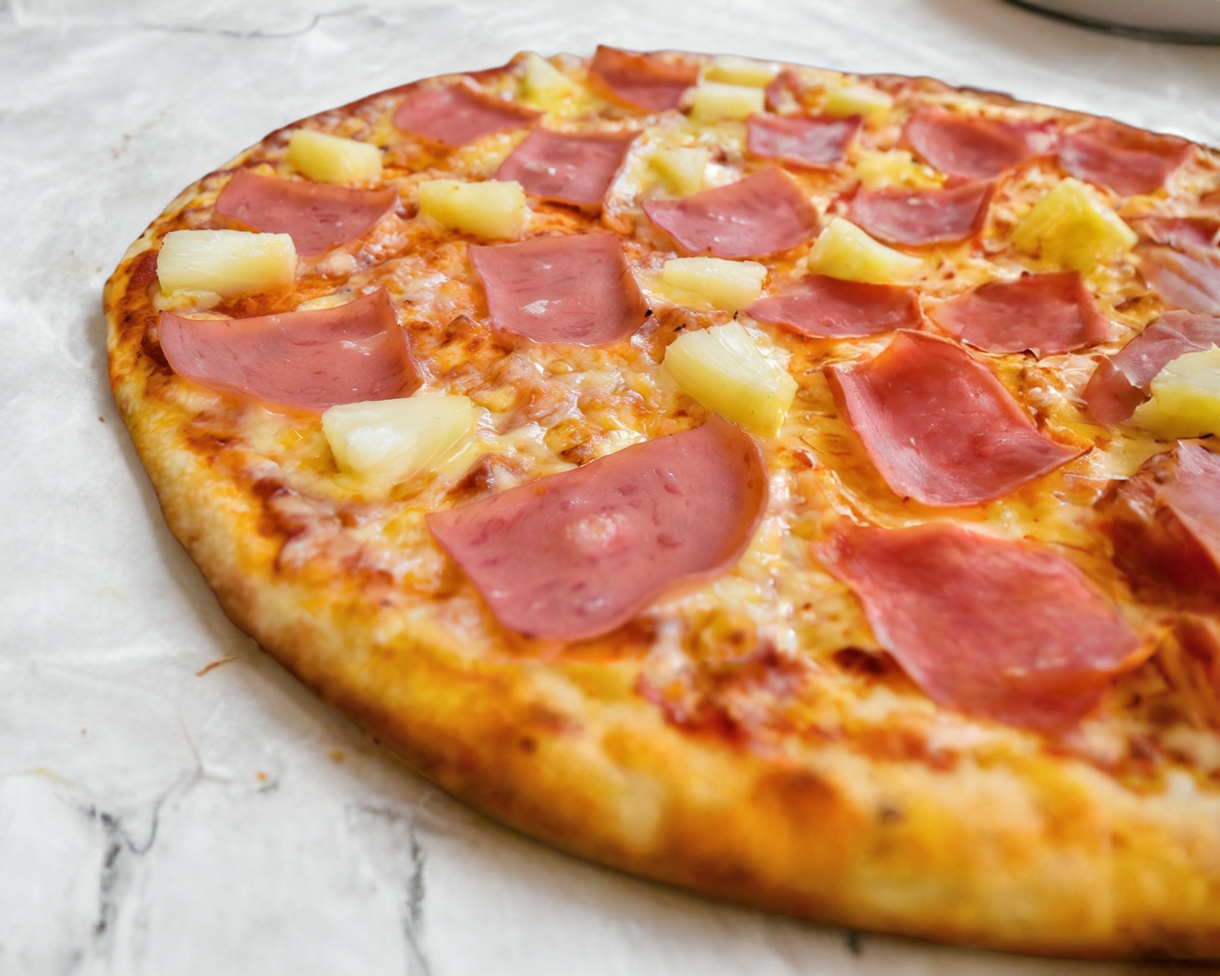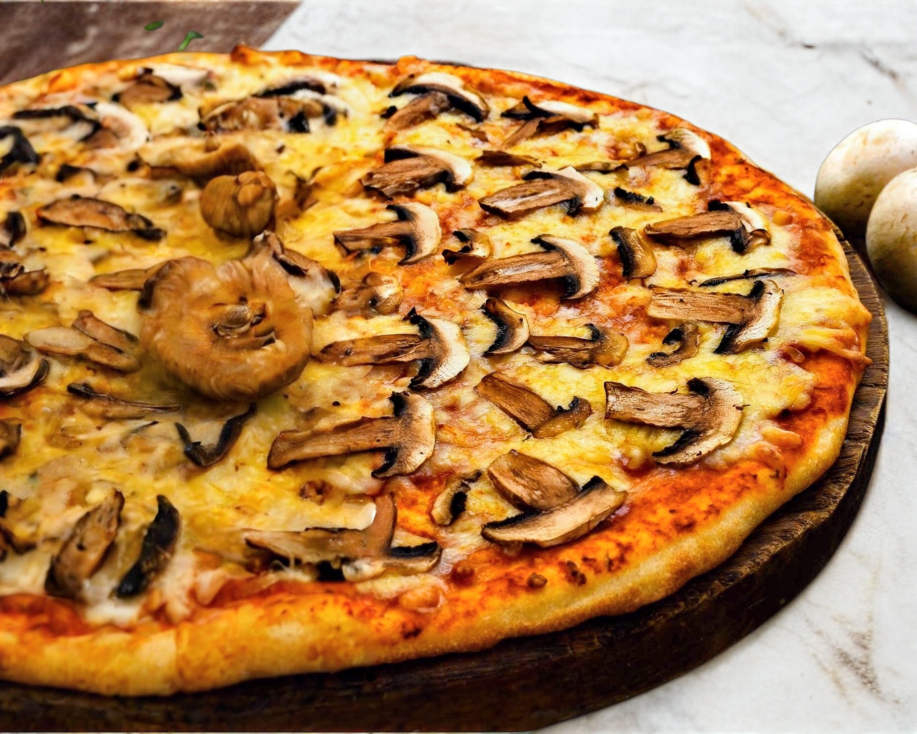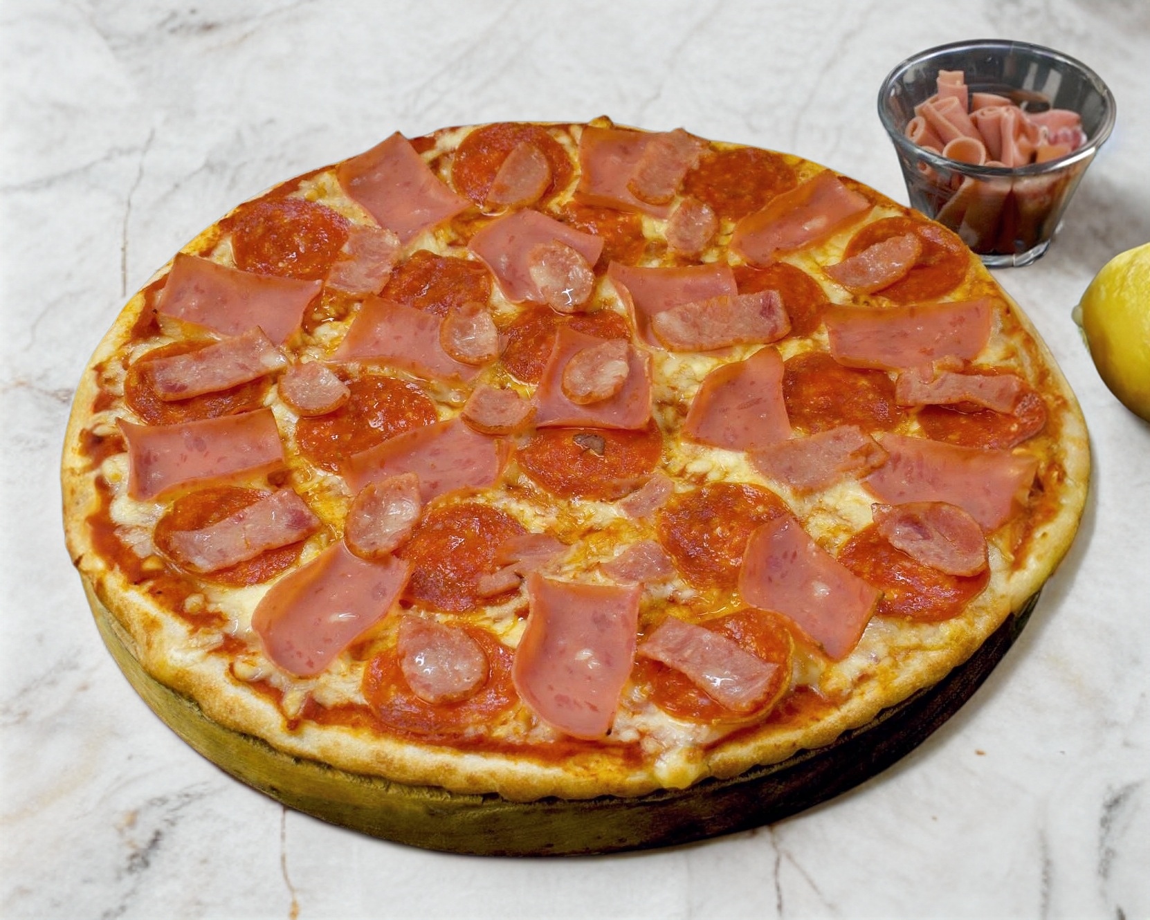 Champiñones naturales, jamón, corazón de alcachofa, aceitunas negras.