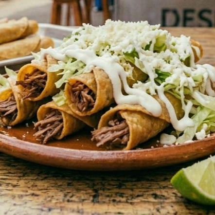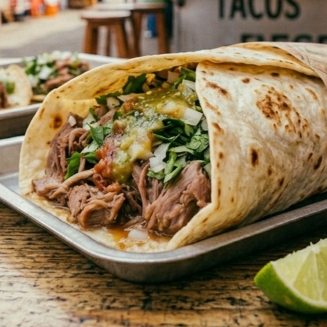(Tortilla normal, barbacoa, lechuga, queso, crema y salsa aparte)