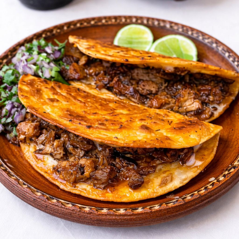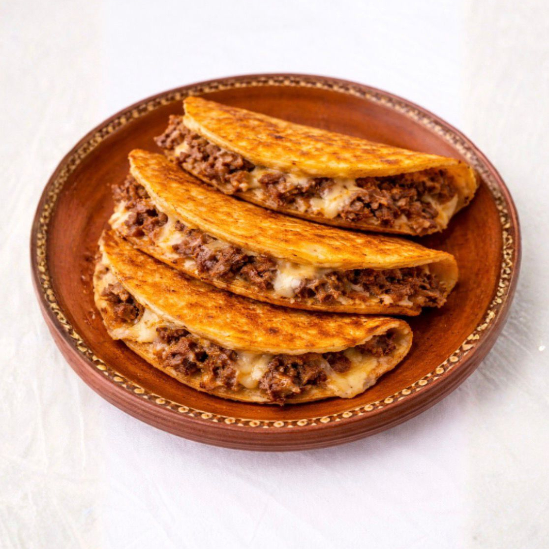 (Relleno de frijol, queso, proteína envuelta en 2 tortillas de maíz)