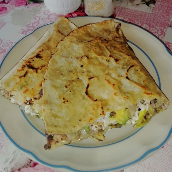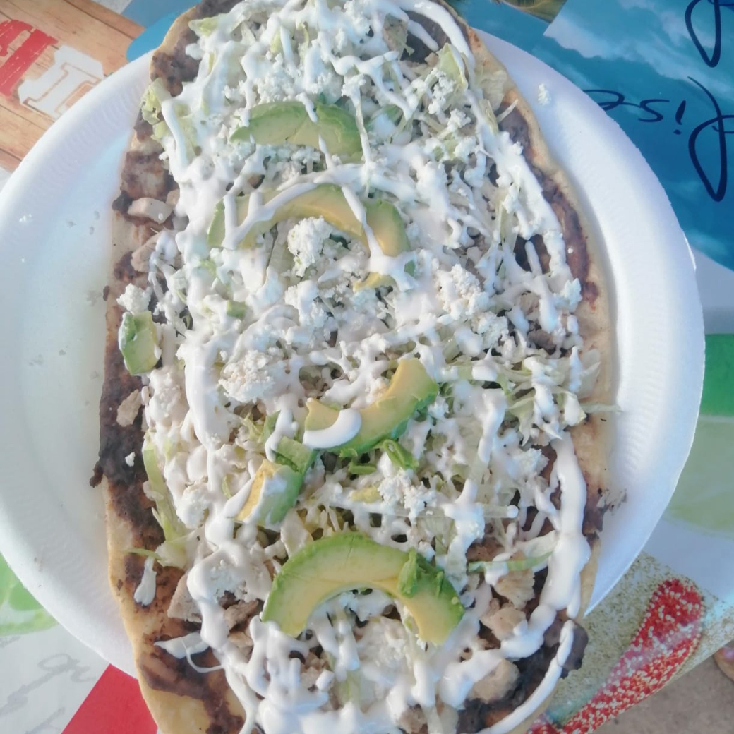 Base de masa alargada con frijoles, salsa, queso y proteína al gusto.