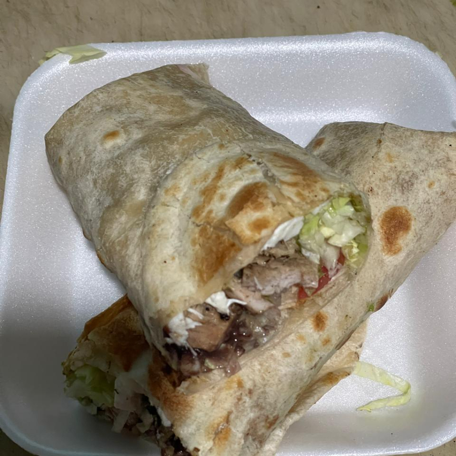 Tortilla de harina, alambre de pechuga,lechuga,tomate,aguacate,y frijoles