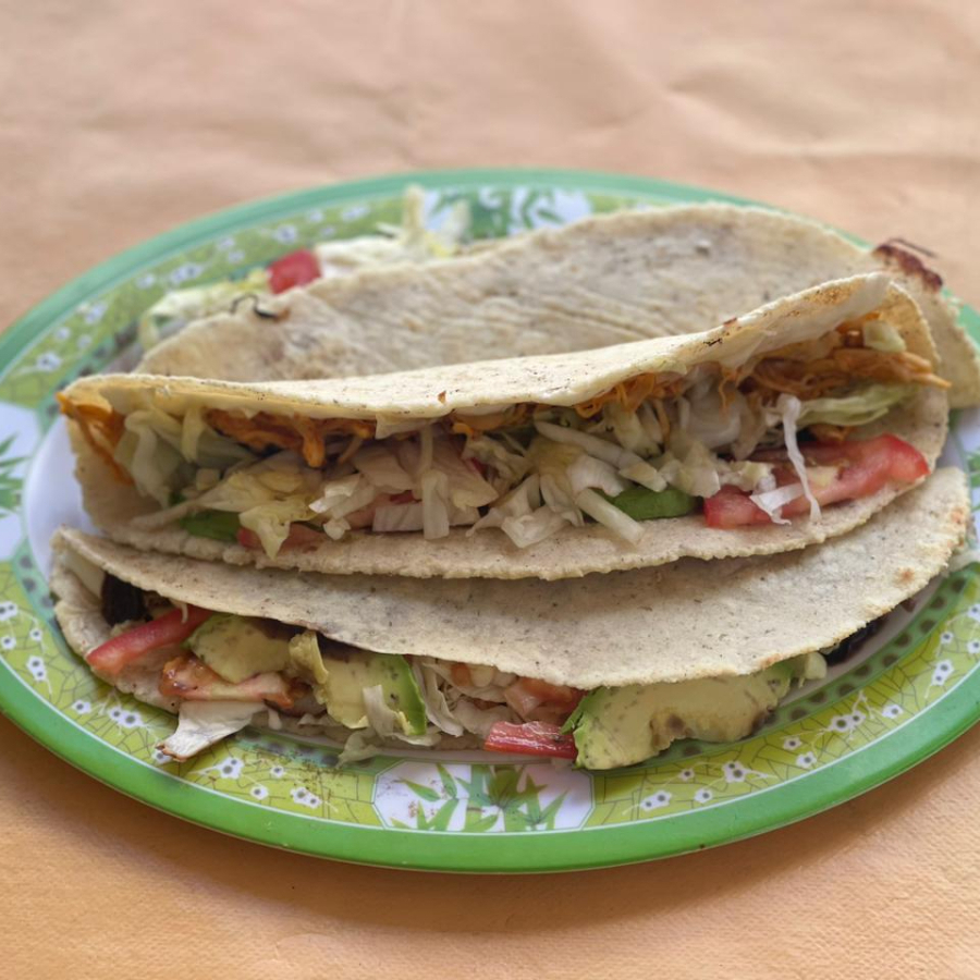 Tortillas de maiz, chorizo, queso de hebra,lechuga,tomate,aguacate y frijoles