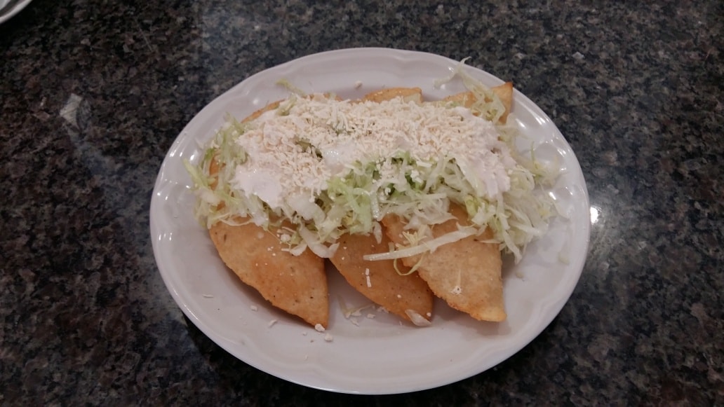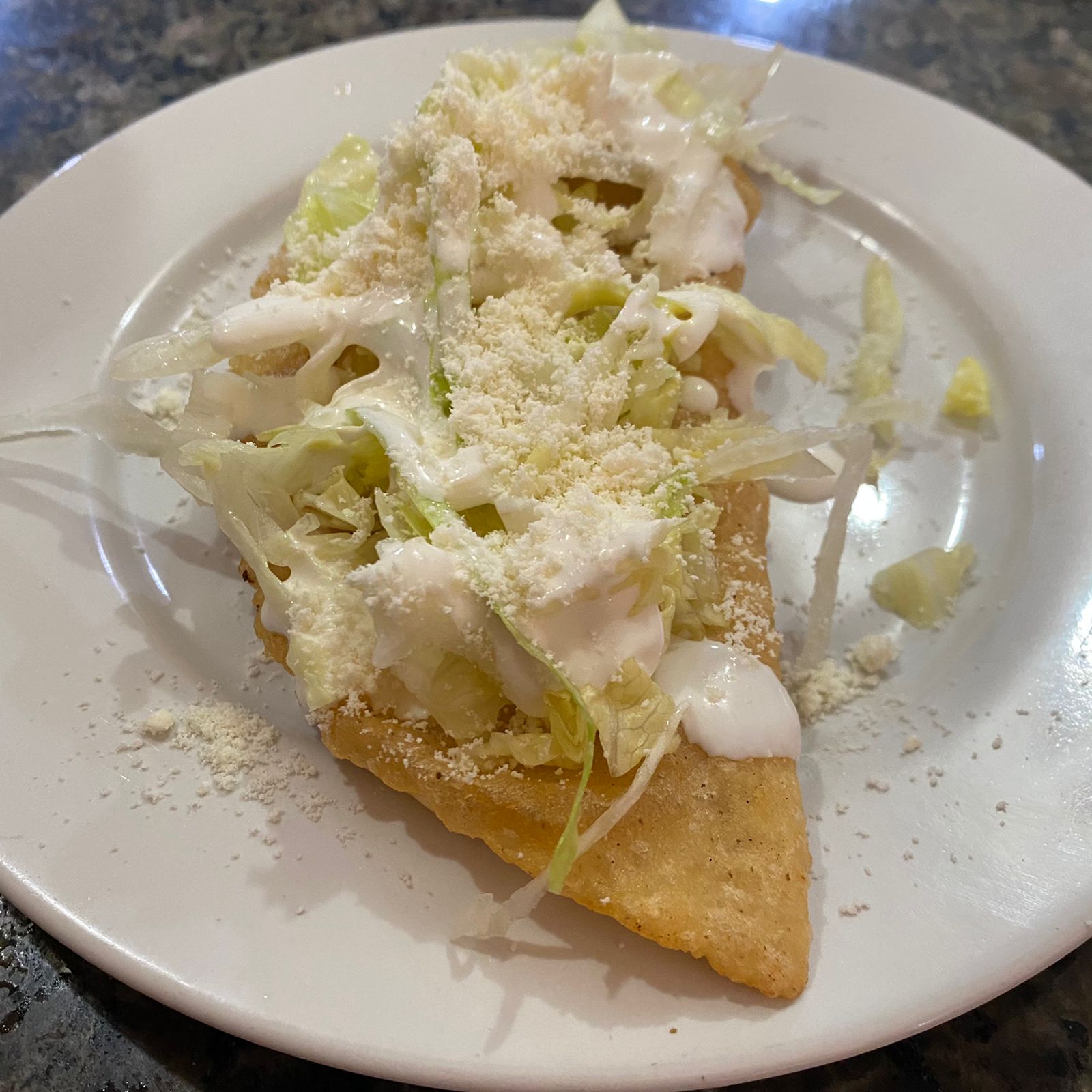 Empanada de Maíz frita y rellena con tu carne a elegir y montada con lechuga crema y queso