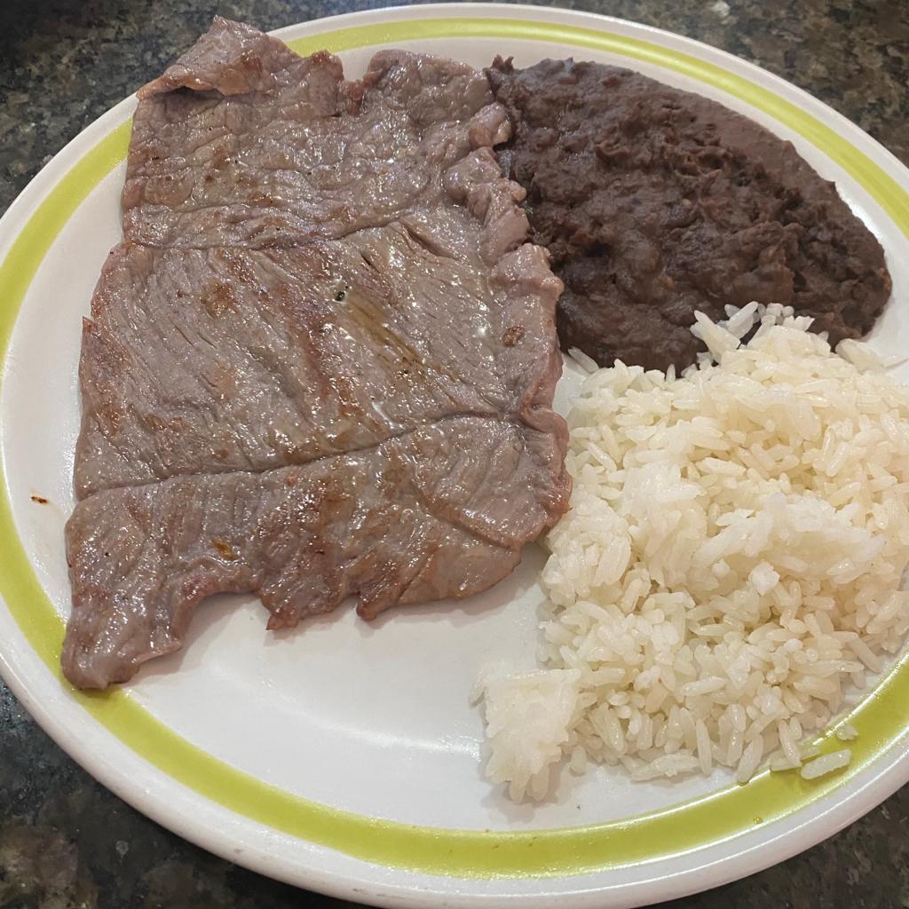 Carne de Res Deshidratada acompañada con Arroz y Frijol