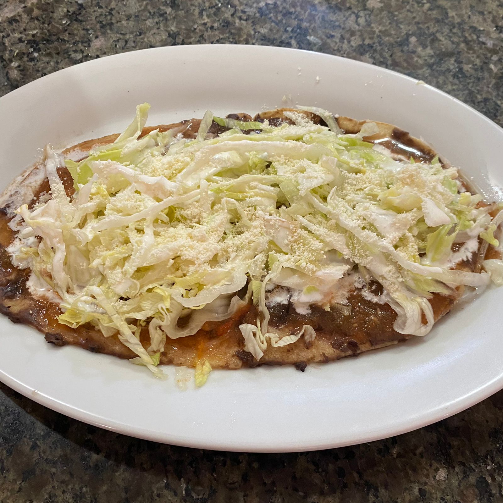 Frijol queso, cebolla, crema, salsa y lechuga.