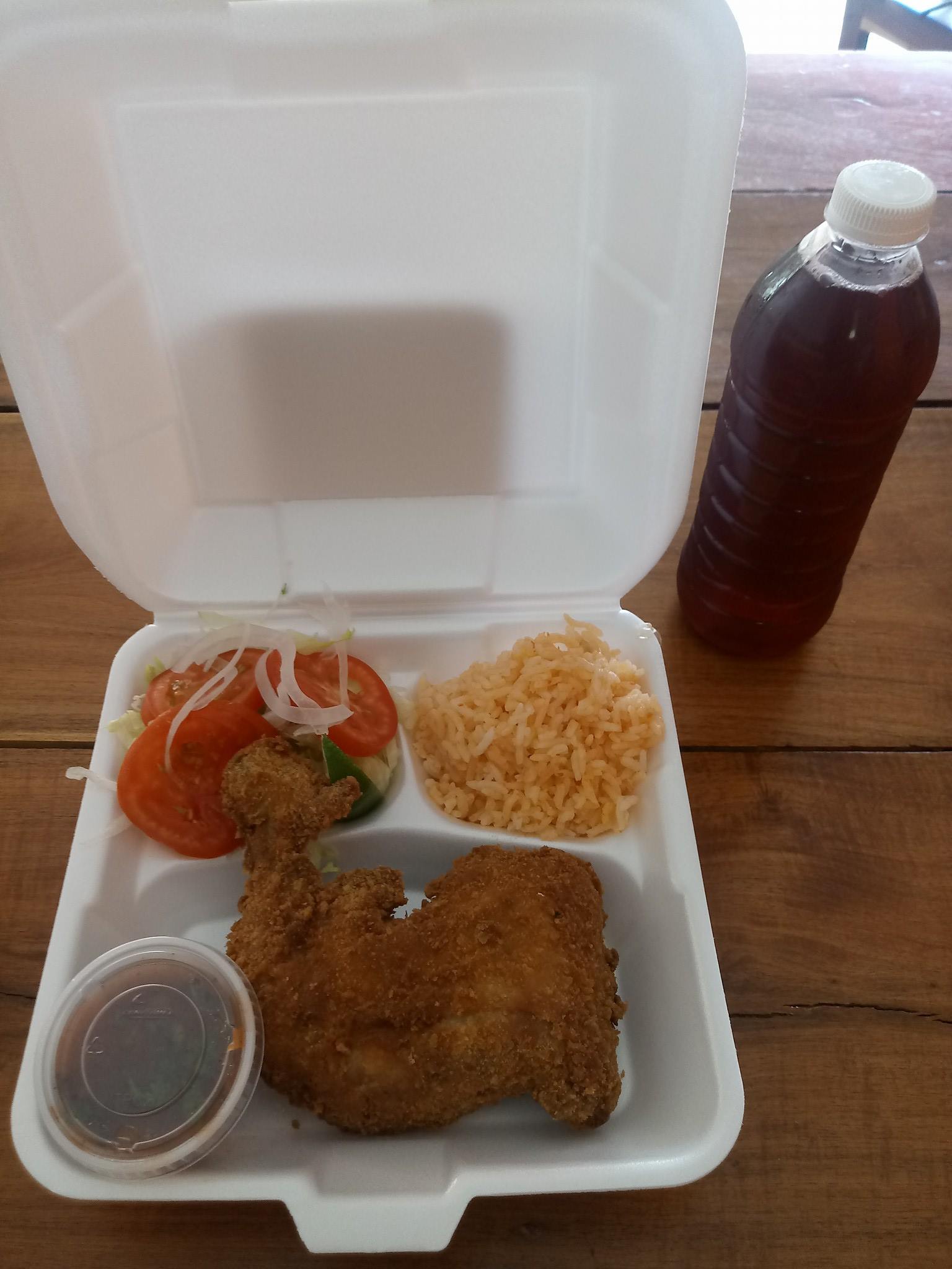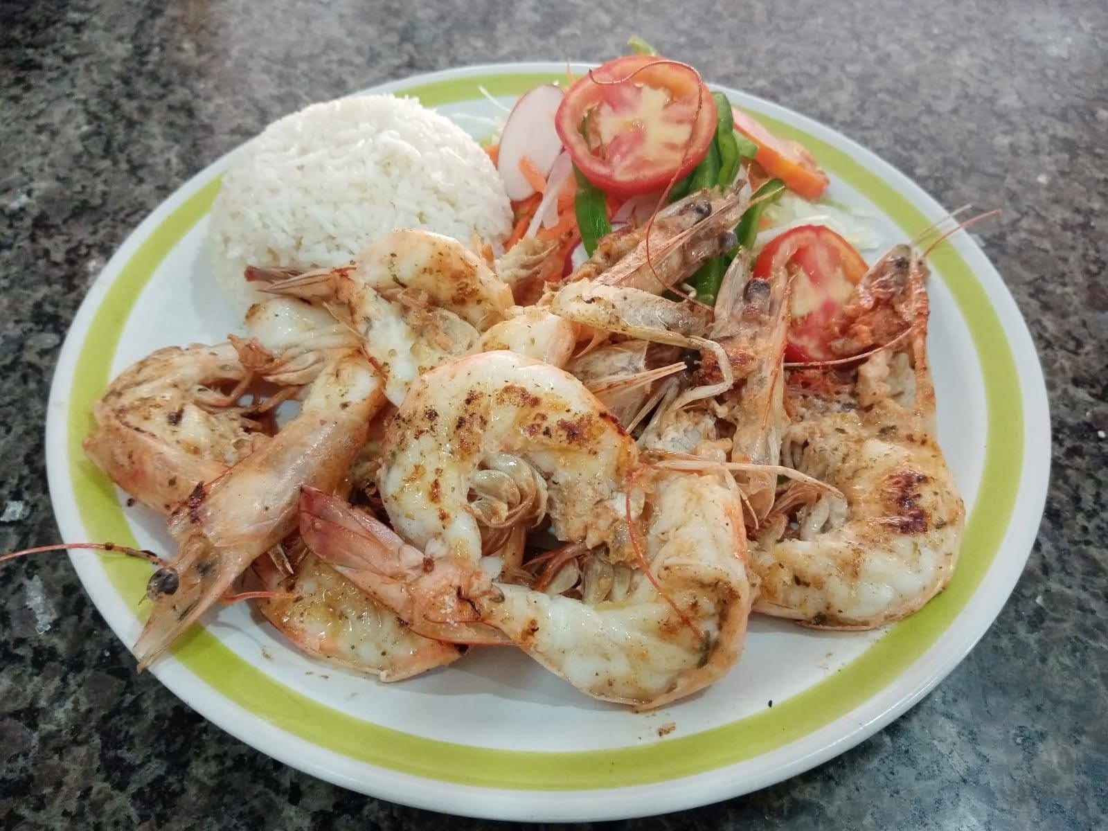 Camarón del Golfo empanizado y frito acompañado de Arroz y Ensalada