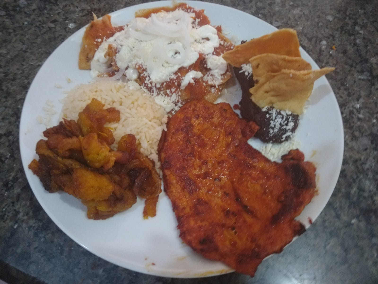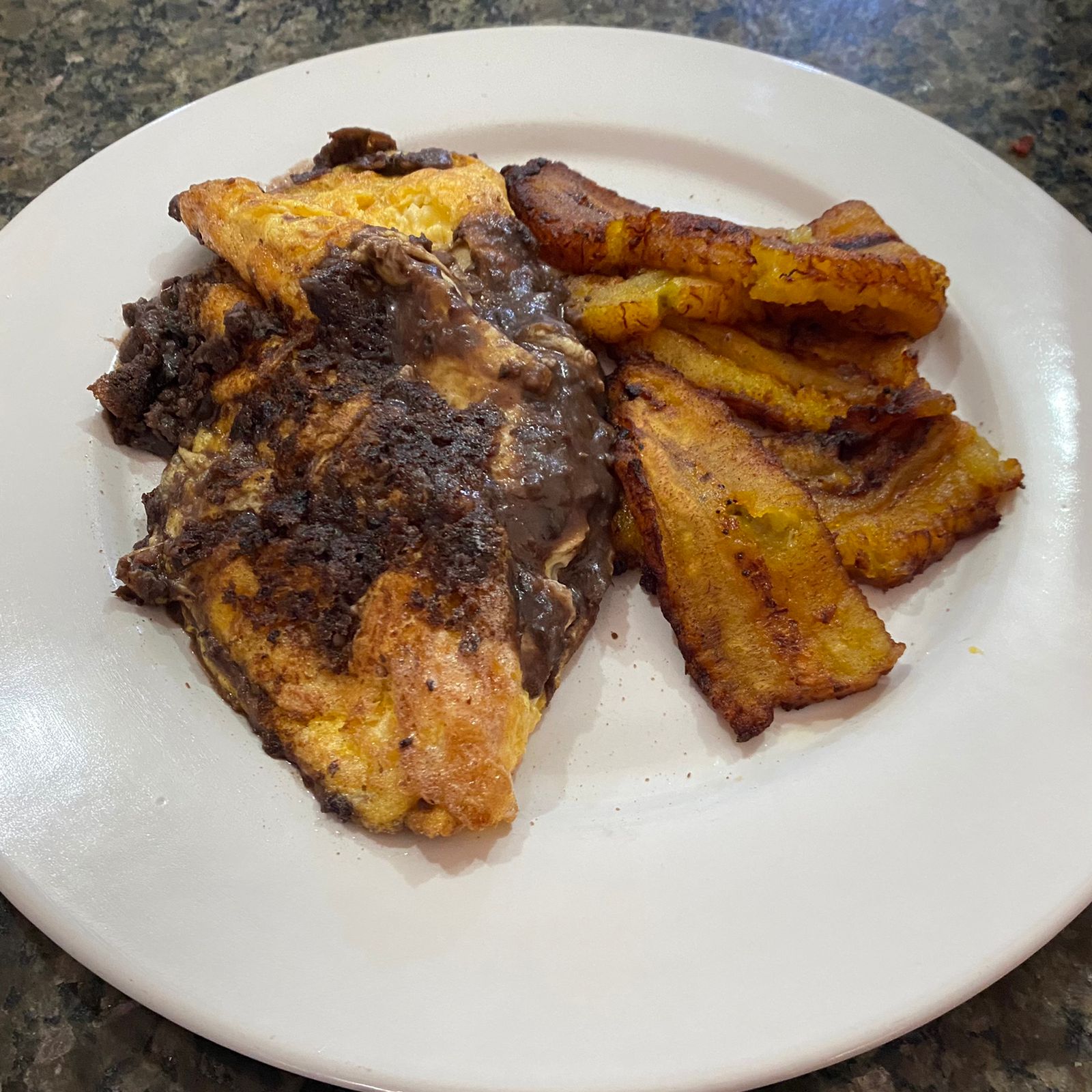 Plátanos Fritos Con Frijoles Refritos*1 + Bistec*1 + Porción de Chilaquiles*1