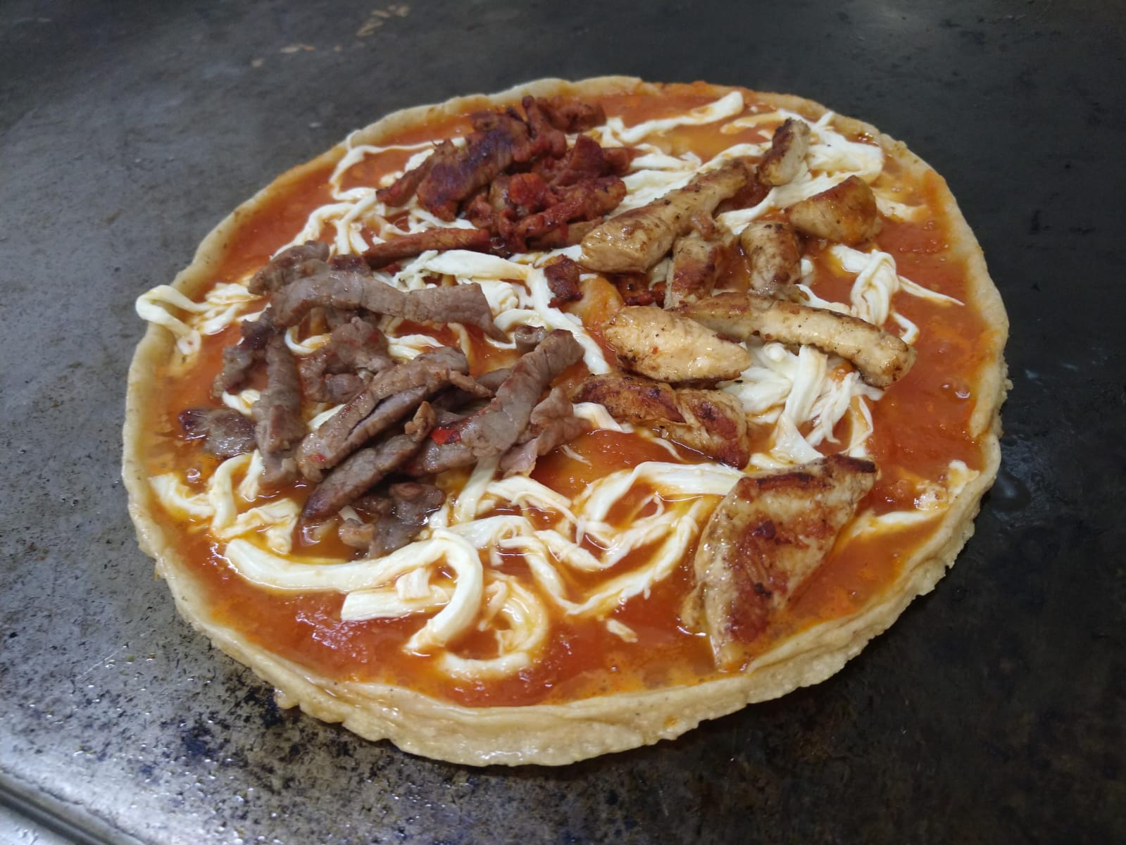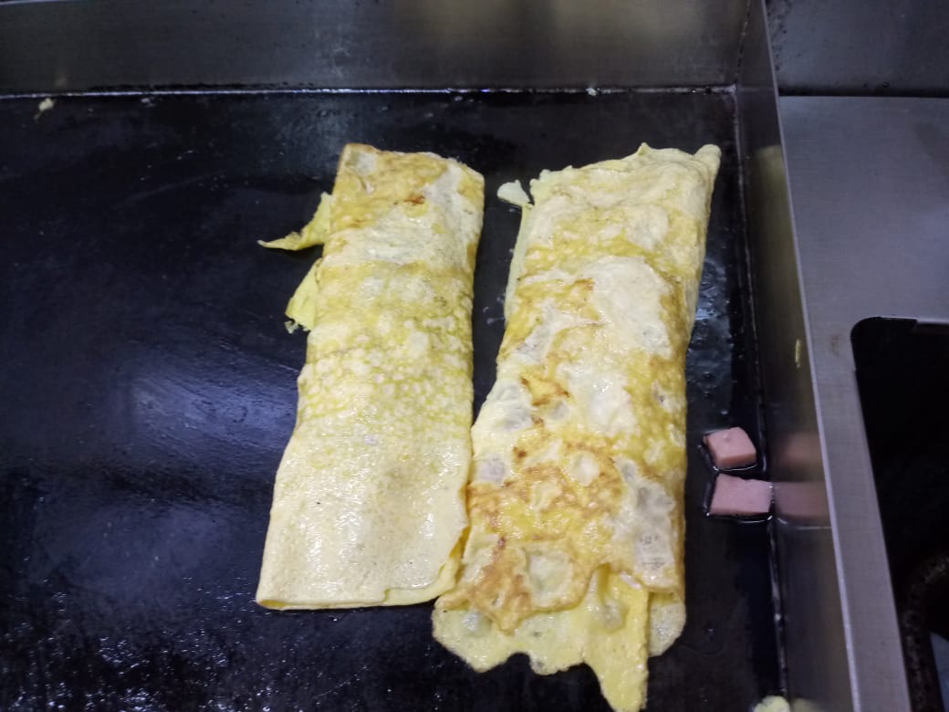 Huevos revueltos a La plancha relleno de queso de hebra y proteina a elegir