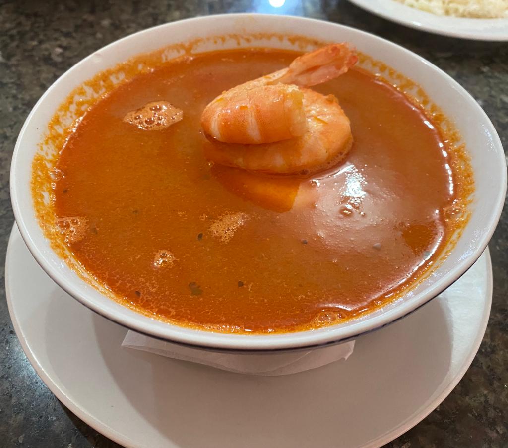 Camarón del Golfo guisado en base de tomate y hierbas de olor acompañado aparte con arroz